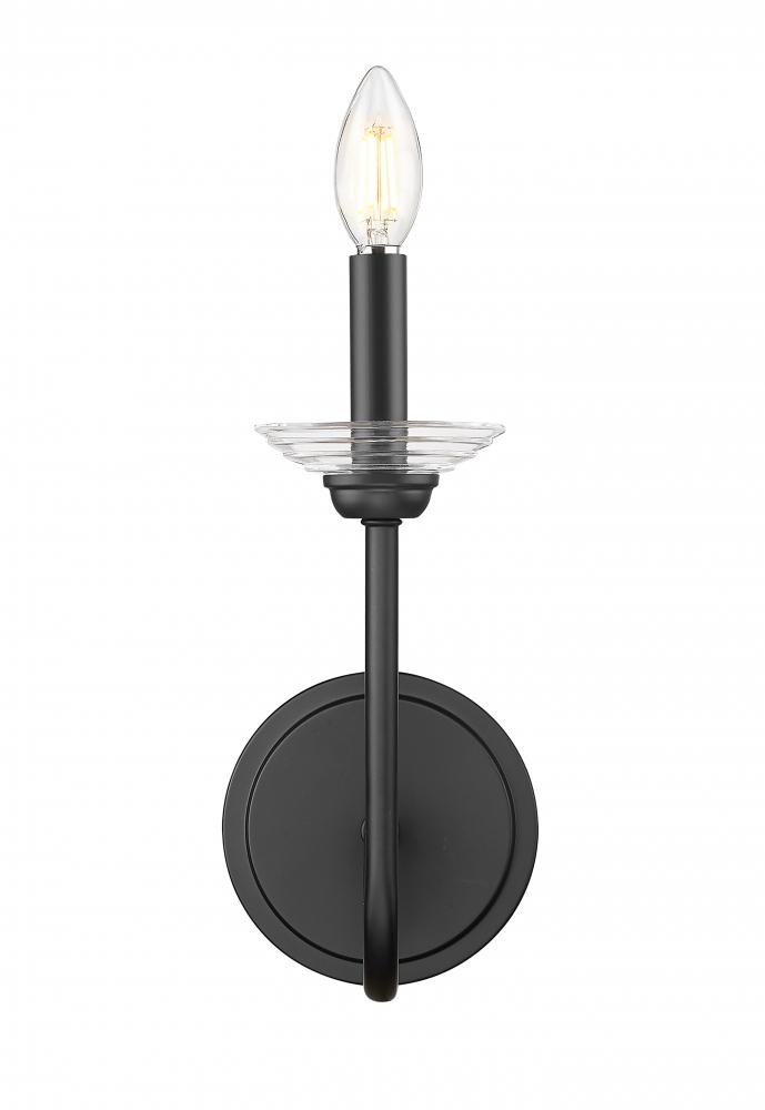 Charm radiates from a transitional one-light wall sconce. With interchangeable bobeches, it delivers floral femininity balanced with a matte black finish over its steel frame. The unshaded bulb delivers bright illumination, perfect for ambiance in a variety of settings.