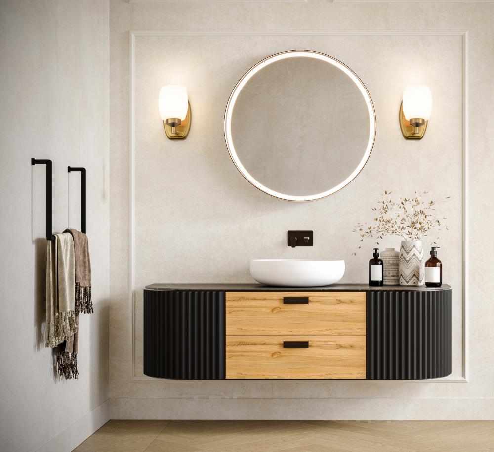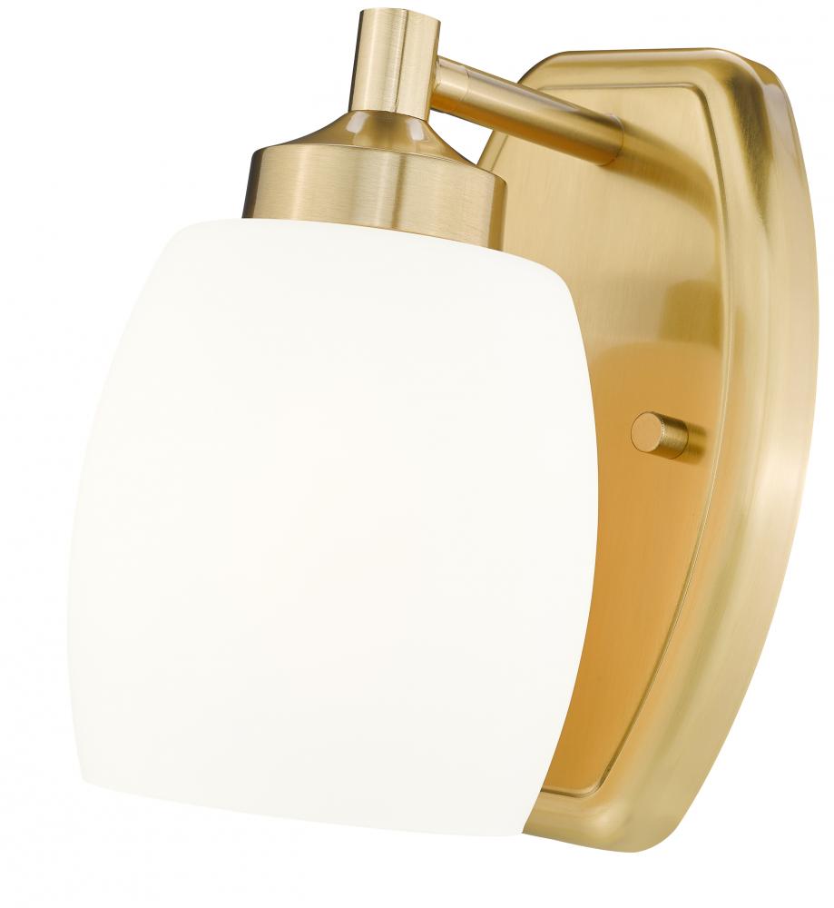 Deep luxe gold finishing brings a sense of rich sophistication to a modern one-light wall sconce. Beautifully appointed, it highlights gentle curvature in both its wall plate and matte opal shade, delivering bright, soft illumination in any room of your home.