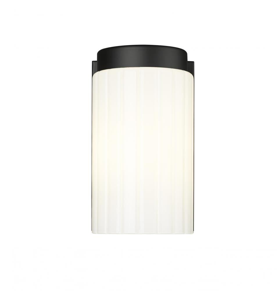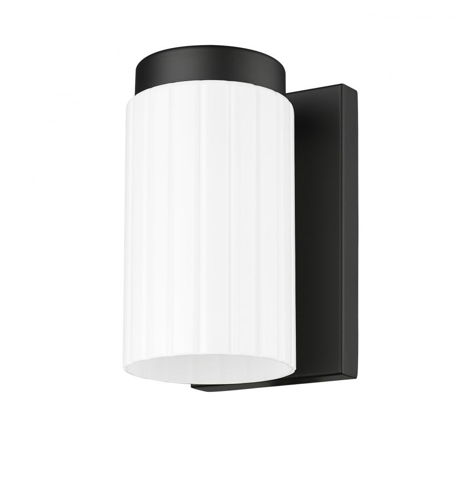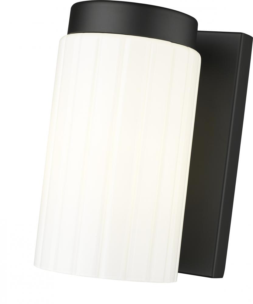 A cylinder of opal glass brings a warm, inviting ambiance to a modern one-light wall sconce. Its rectangular wall plate and collar-style embellishment showcase a matte black finish, creating bold contrast against the shade and most walls. Add it to a living area, kitchen, or bath to deliver fresh style and beautiful illumination.