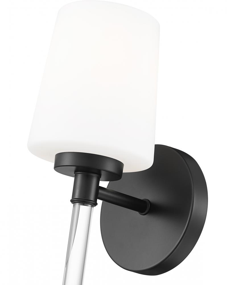 In a richly dark finish, this modern matte black one-light wall sconce brings a tailored edge that outlines pale walls and stone with a strong, confident silhouette. The slender crystal stem keeps the look light and airy, so the fixture suits everything from a compact powder room to a cozy reading corner beside the bed. Switch it on and this sculptural light paints a gentle pool of illumination that makes artwork, mirrors, and architectural details feel a little more dramatic.