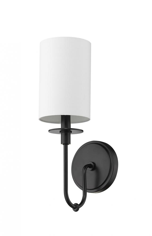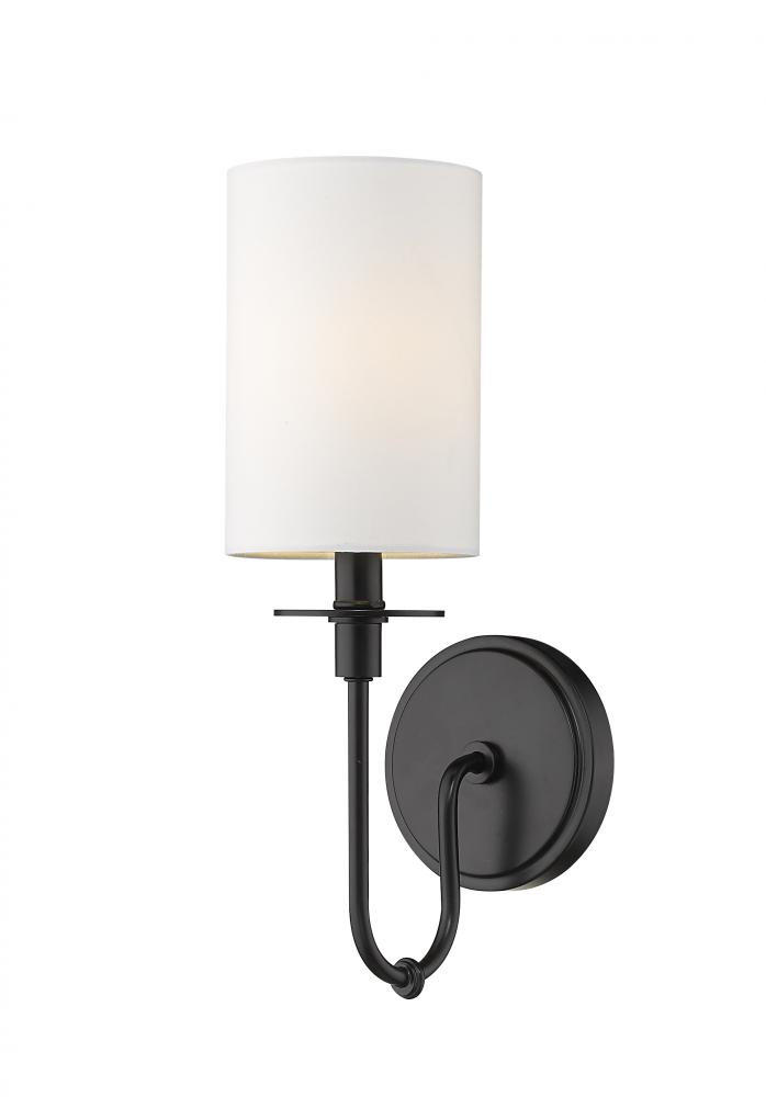 Add supplemental lighting to a transitional or modern space with this matte black finish one-light wall sconce. With a romantic curved silhouette, its steel frame extrudes from a sleek oval wall mount to offer charming ambiance. A white fabric shade completes the design-forward look of a versatile fixture that sets the pace for a chic upscale space.