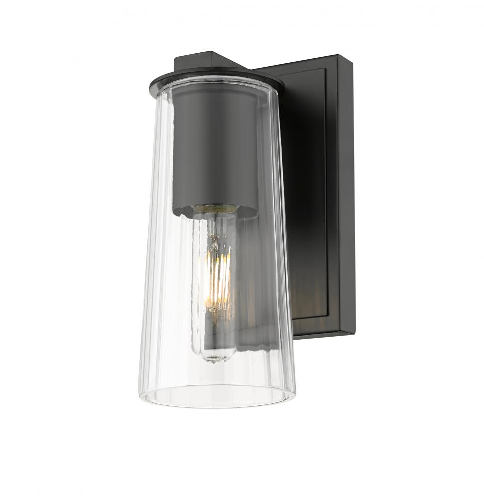 Balancing the delicacy of clear tapered glass with the bold style of a matte black finish, this modern one-light wall sconce is a statement piece in any setting. Its rectangular wall plate adds substance to the design, which showcases a tubular bulb that adds vintage character and appeal.