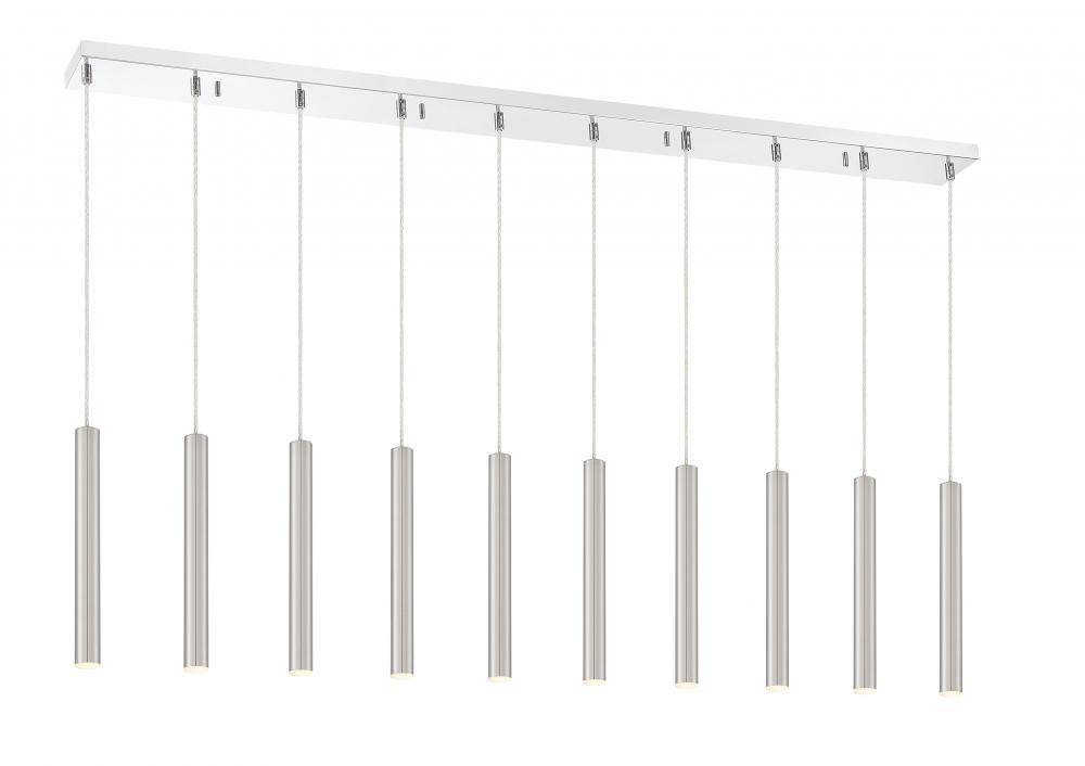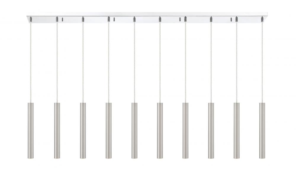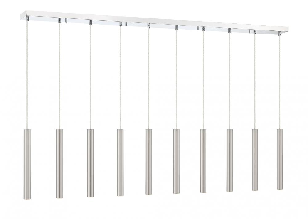 Windchime-inspired, this stunning ten-light island pendant adds quirk and style to any kitchen. With a brushed nickel finish, the open and clean design casts a soft glow.