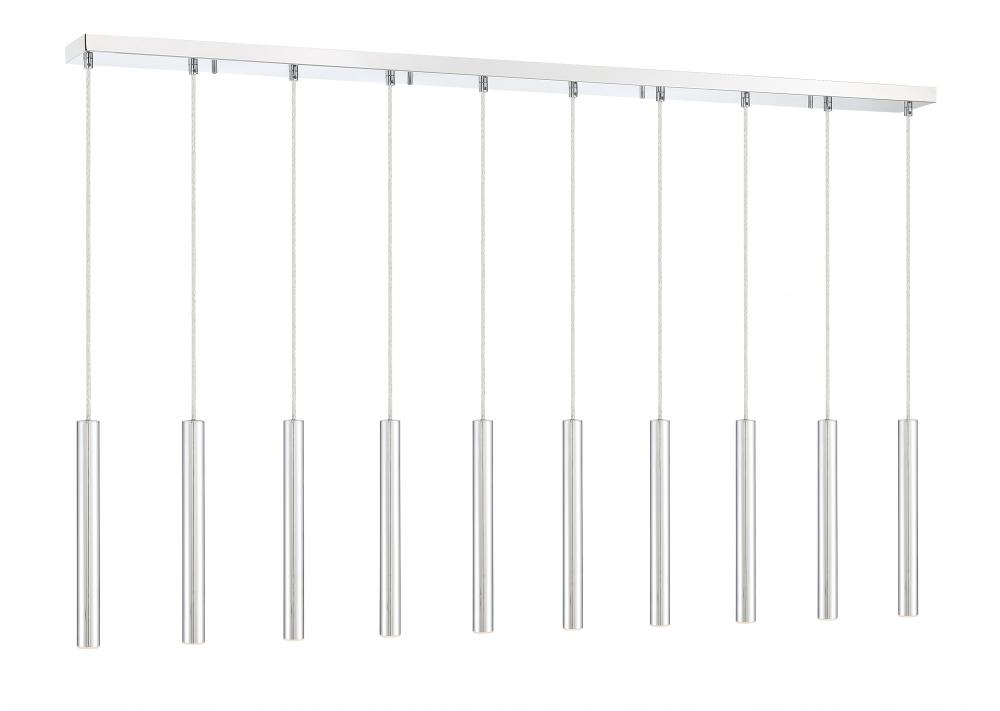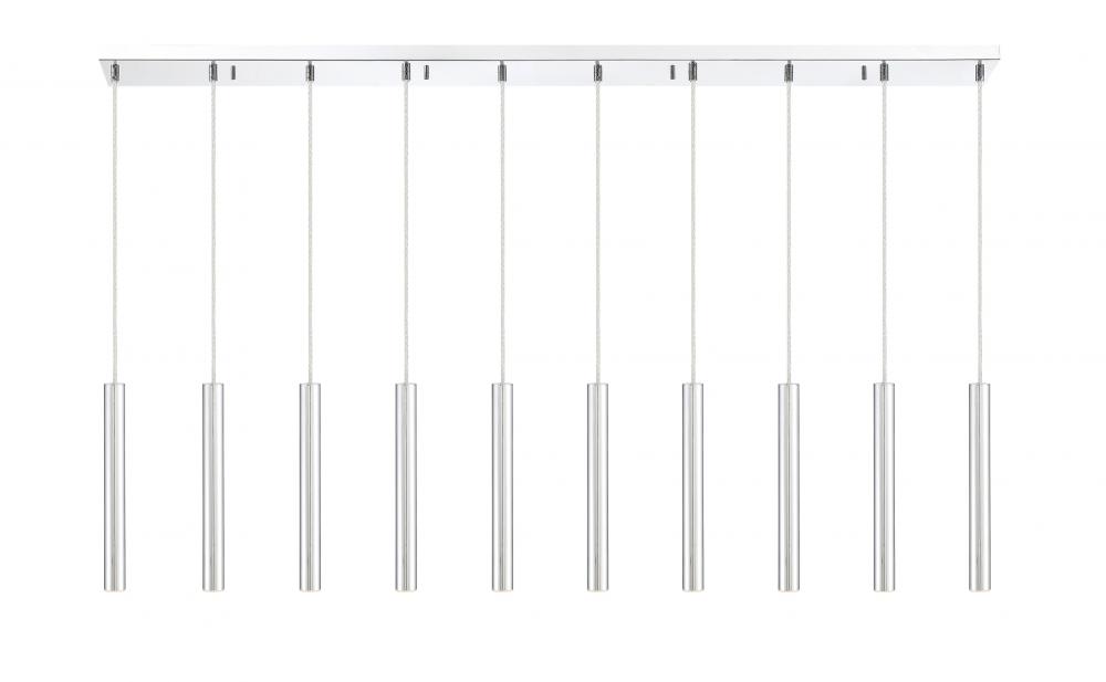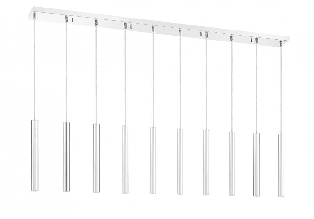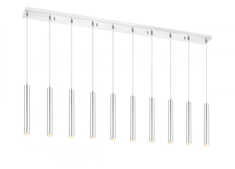 Full of quirk and style, this stunning ten-light island pendant transforms with clean lines. The open and clean design casts a soft glow, elevated by a shiny chrome finish.