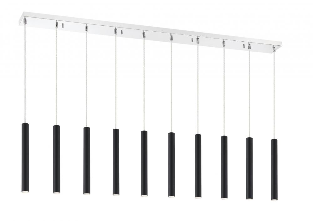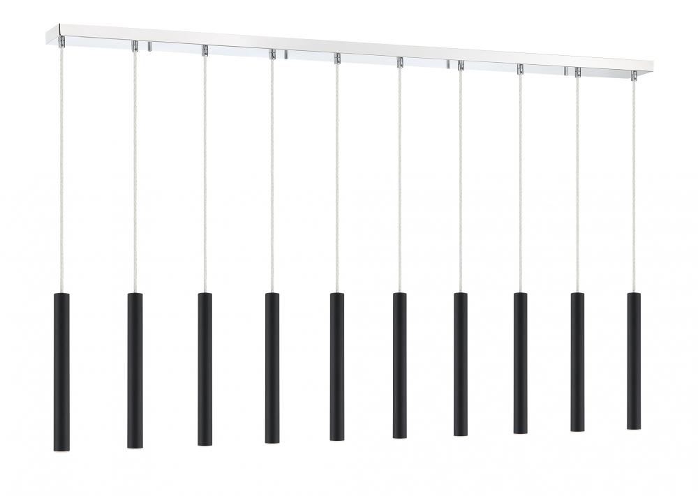 Windchime-inspired, this ten-light pendant light is sleek and clean. Create a playful centerpiece with the elongated shapes and rich, matte black finish.