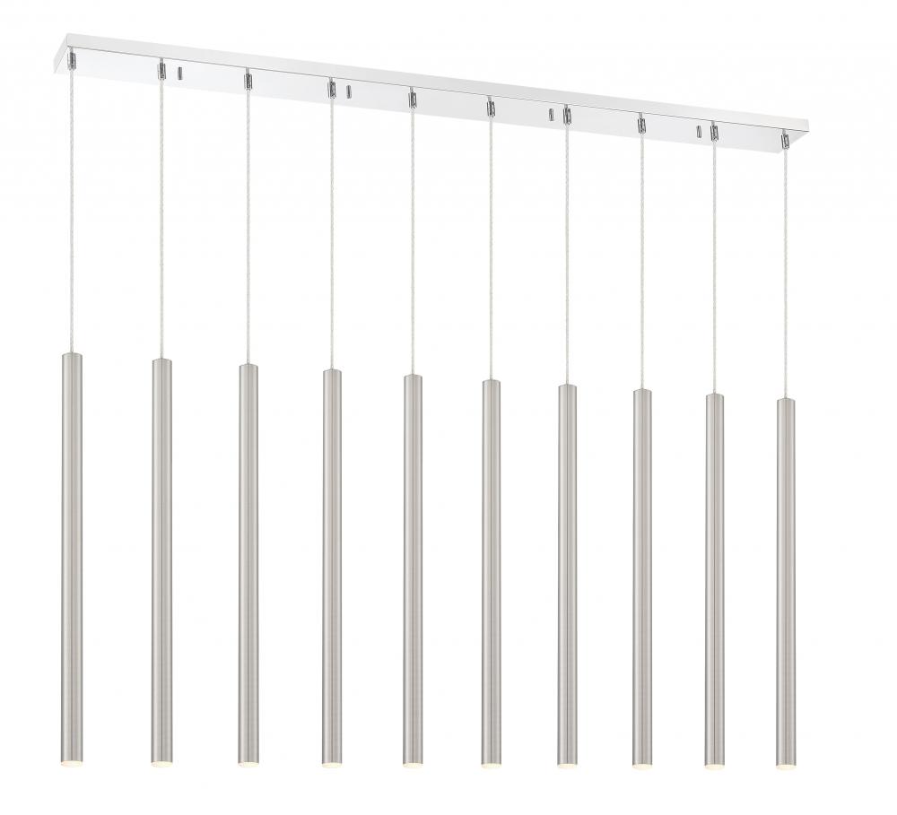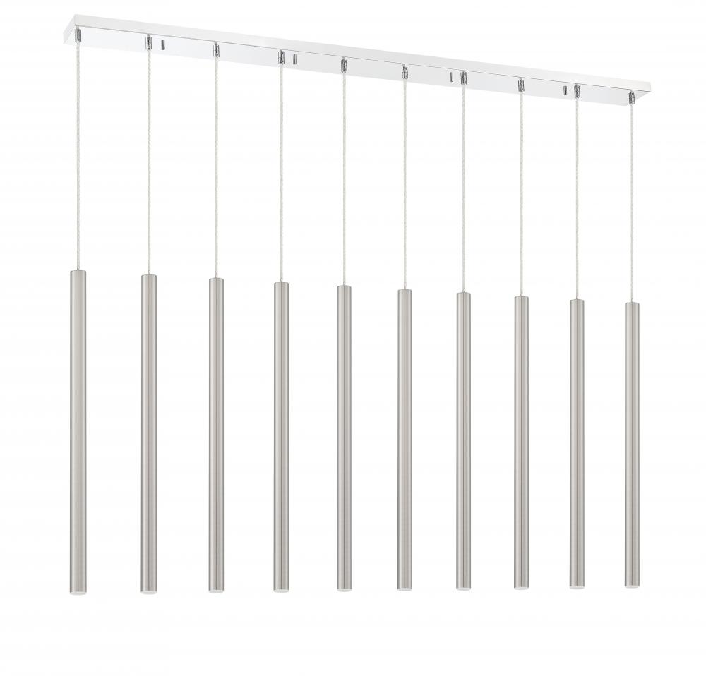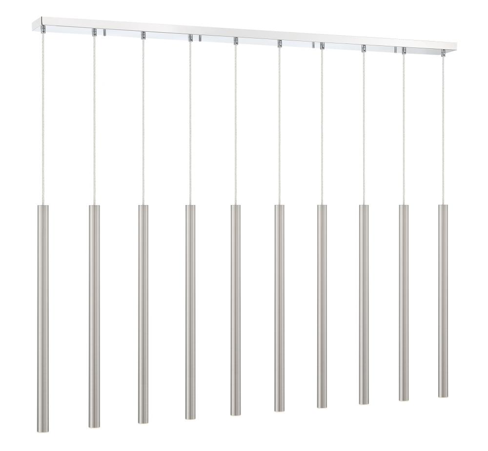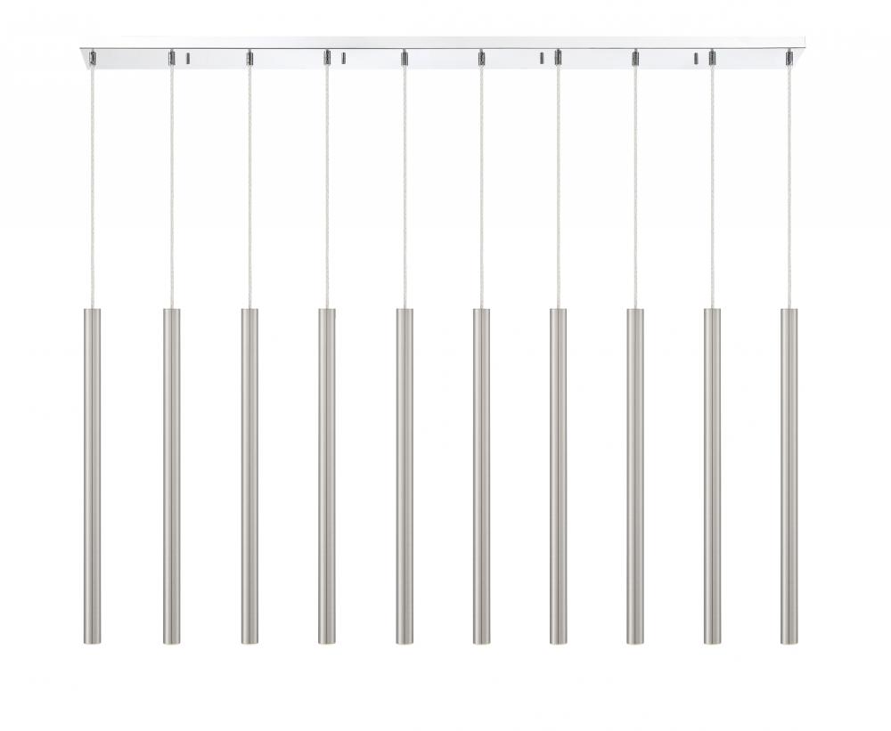 The sleek and clean lines from this ten-light pendant light looks beautiful in a modern bathroom or hallway. The windchime-inspired silhouette dazzles with a shiny brushed nickel finish.