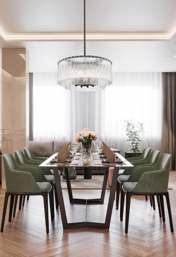 Gleaming icy glass panels encircle two tiers to create the refined look and feel of this modern 10-light pendant. A radiant centerpiece, it boasts a matte black finish over its minimalist frame, built from steel for excellent performance and longevity. Its elongated panels of textured clear glass diffuse illumination, beautiful over a dining table, bedroom or foyer.