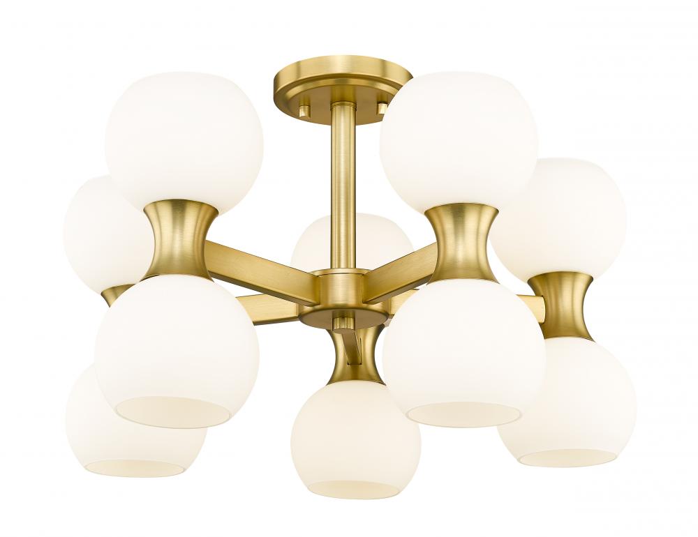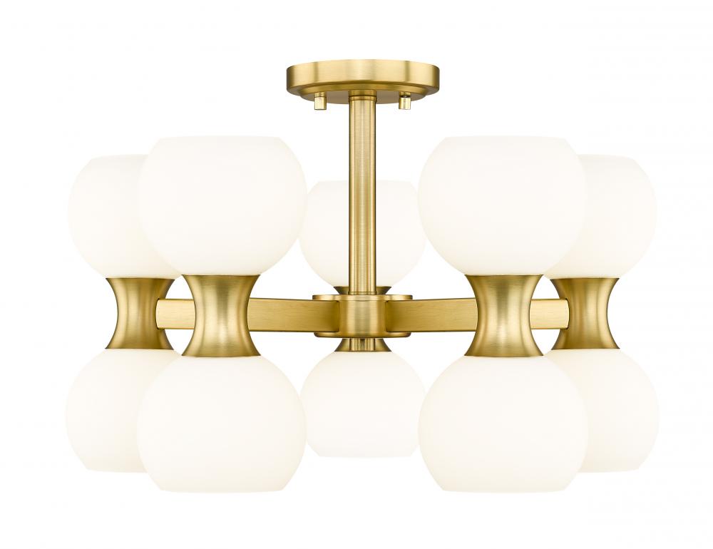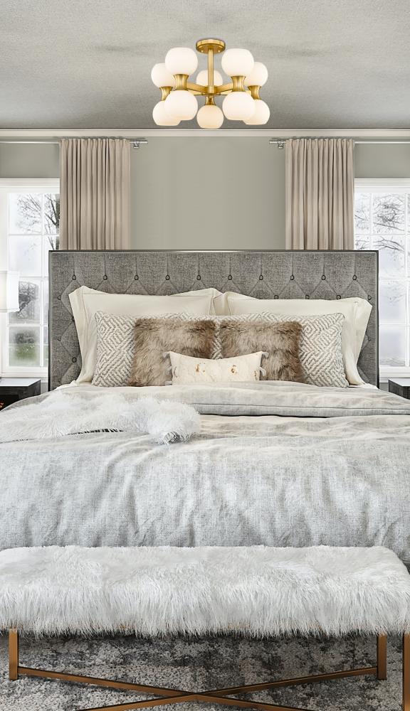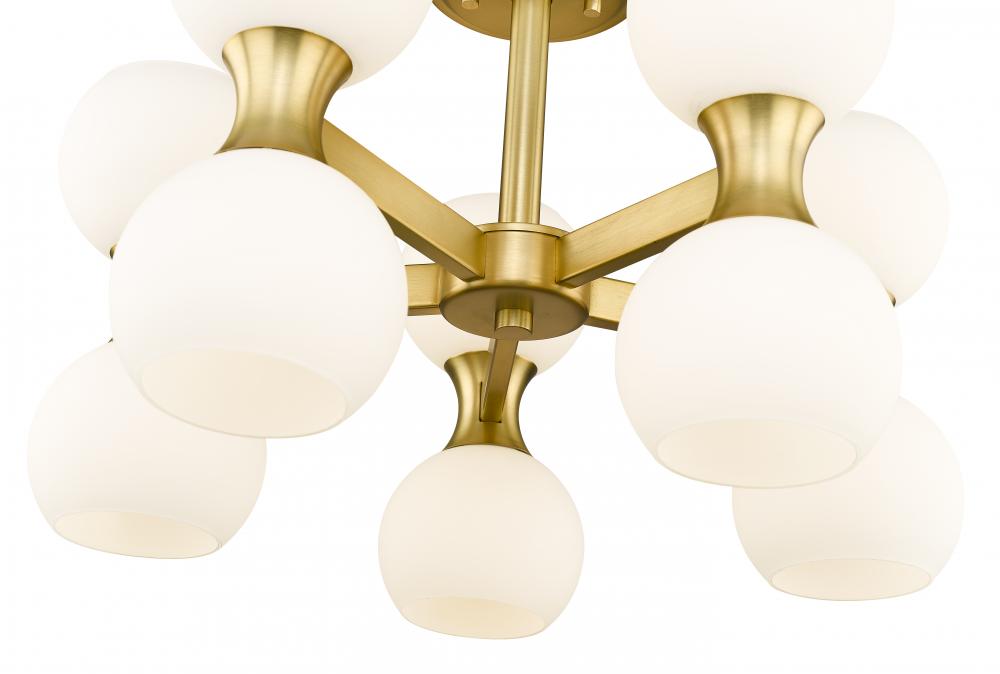 Bring Mid-Century Modern aesthetics into the fold with a light fixture that embraces personality full-throttle. This semi-flush mount ceiling light from the Artemis collection invokes transitional and modern elements with a cool modern gold finish steel spoke frame and gently curved shapes that cuddle matte opal glass globe shades. Downlighting and uplighting equal ambient illumination perfect for a kitchen, dining space, or entryway.