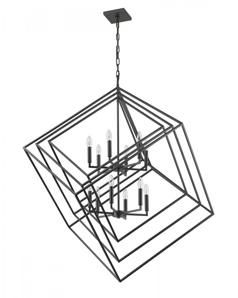 An overlapping geometric frame features 10 candelabra bulbs on this contemporary chandelier. Complete with a sophisticated combination of form and function, this piece delivers appeal with a matte black finish.