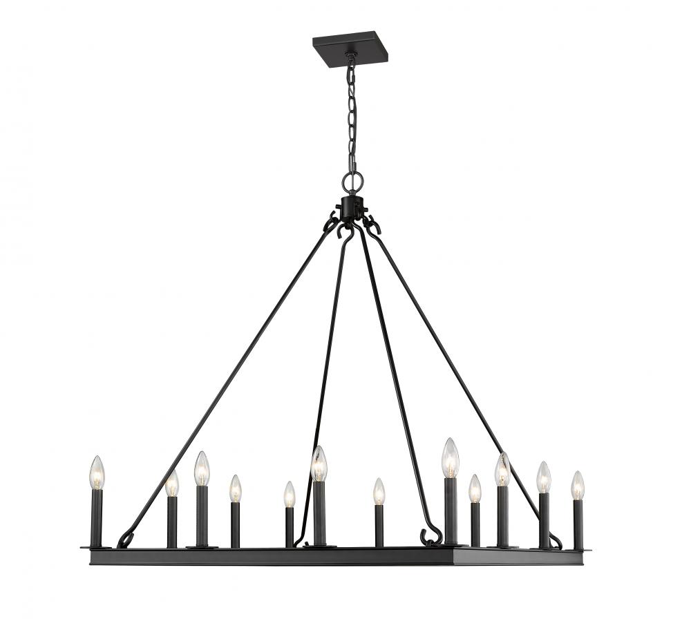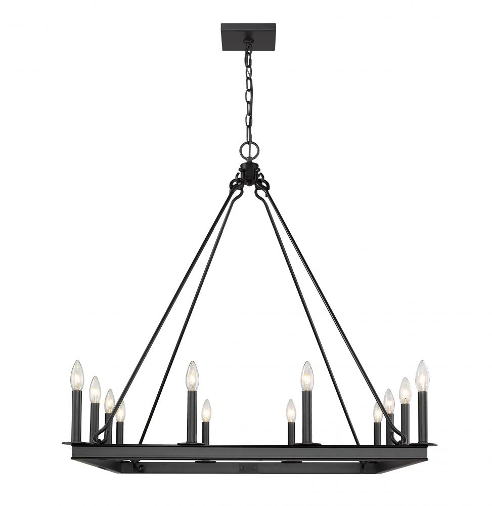 Elevate the elegance of your home lighting with this majestic twelve-light chandelier. It features a handsome matte black finish with the candle-inspired lights in a bold square design. Its the chandelier youve been looking for to light up your dining room, foyer, or kitchen.
