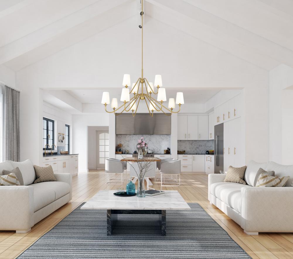 Maintain an airy ambiance while illuminating a large area with this striking modern 12-light chandelier. Its two-tiered silhouette features swooping arms capped with opaque white shades , offering chic style in a modern gold finish. Simply beautiful over a dining table or in your foyer.