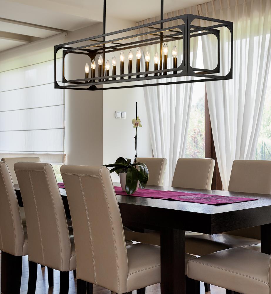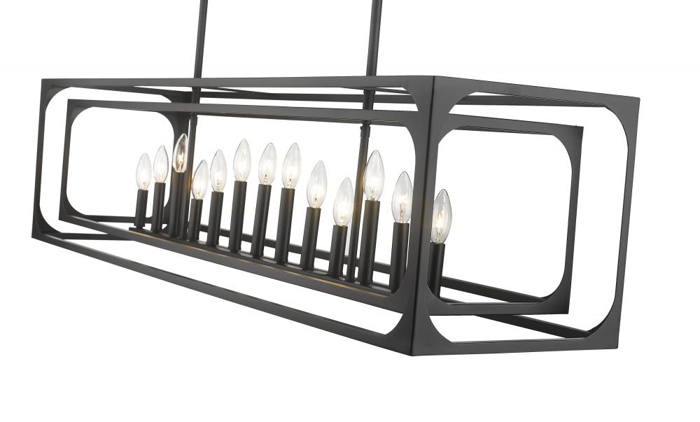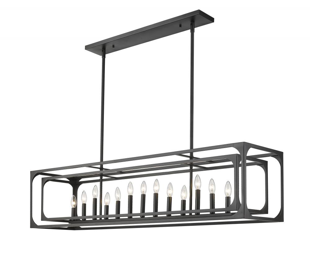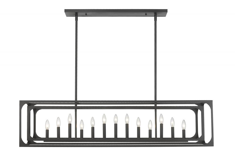 Recreate the stylish look of farmhouse-industrial style with a fixture that adds ambient lighting and bold design appeal to both modern and transitional spaces. Starting with linear elements and an orderly aesthetic, the Easton thirteen-light island light sneaks in a romantic theme with charming candelabra bulb mounts set in a graduated arrangement, centered in full view thanks to a dual-layered openwork matte black finish metal frame. Symmetry and minimalism reflect a sought-after effect with limitless personality.