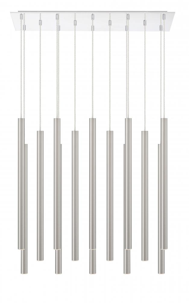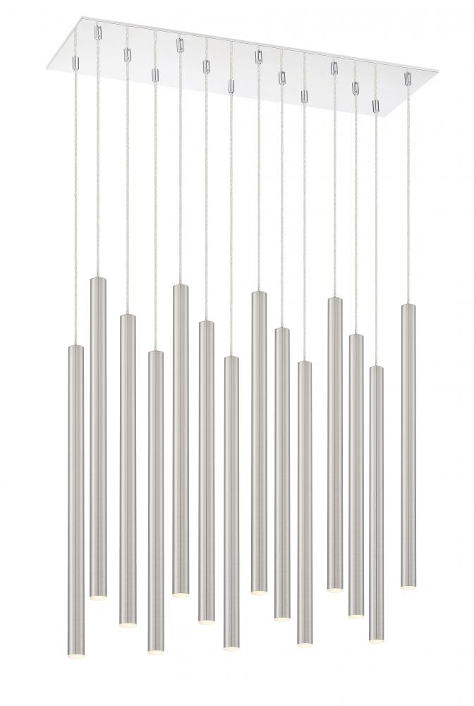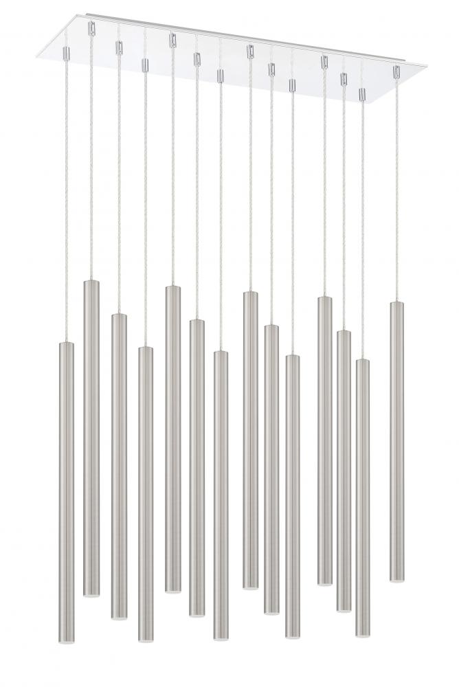 This fourteen-light pendant light features a radiant finish over a sleek and clean frame. Celebrate modern brilliance with shiny brushed nickel.