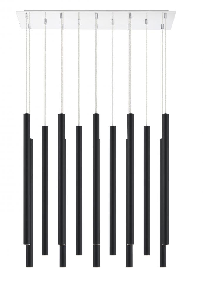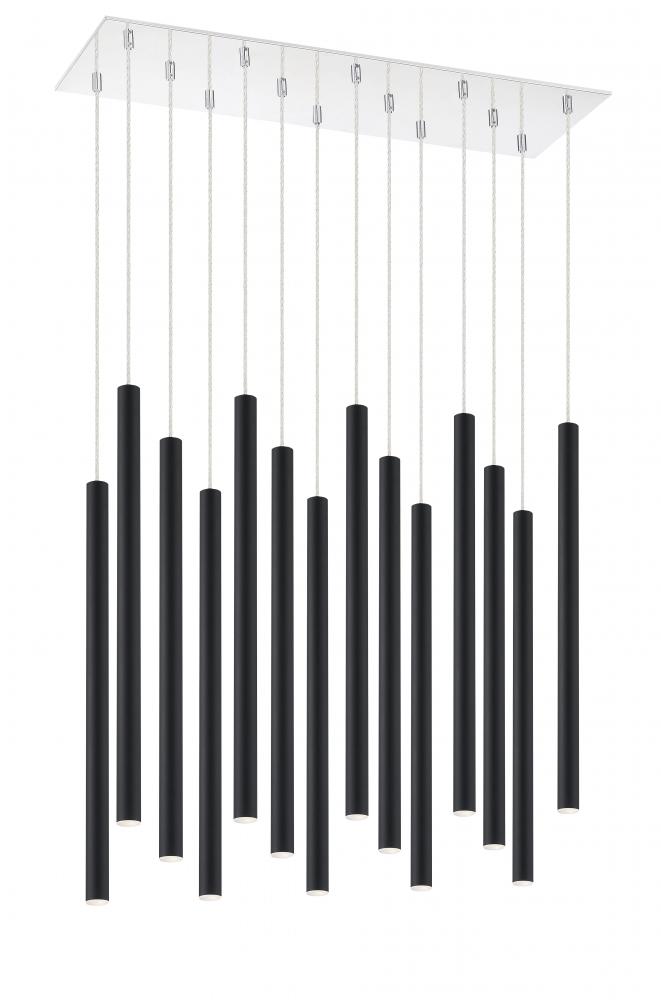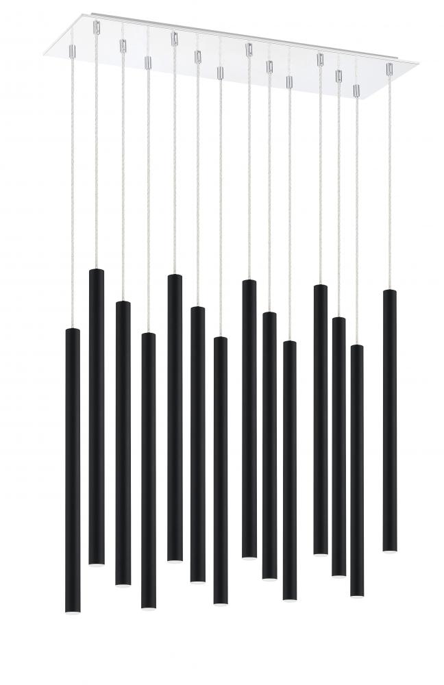 Dress up a dining room with the sleek, windchime-inspired silhouette of this fourteen-light pendant light. Boasting a matte black finish, the elongated lines of the modern frame create a stunning centerpiece above a bountiful dinner.