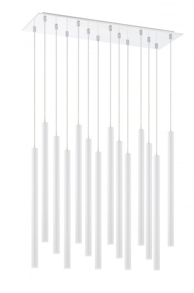 Matte white from this fourteen-light pendant light creates a crisp look in any modern space. The windchime-inspired silhouette is full of refined and sophisticated details.