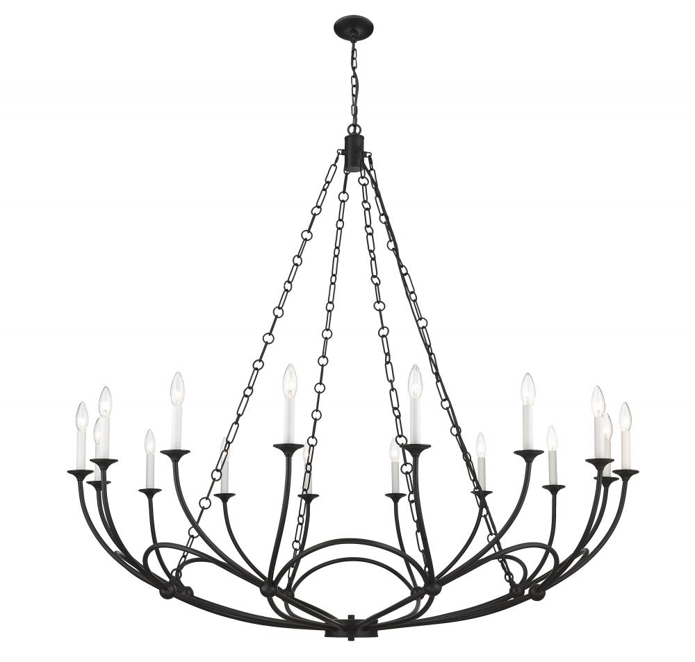 A perfect marriage of gallery-inspired artistry and theatrical drama meets in the middle to deliver an unforgettable look in interior lighting perfect for a grand dining space or foyer. From the Arabella Collection, this 16-light chandelier maintains a light, symmetrical motif in spite of its bold matte black finish steel construction. A ribbon-like design accents its chicly arched frame with charming candelabra bulb mounts that soften edgy character.