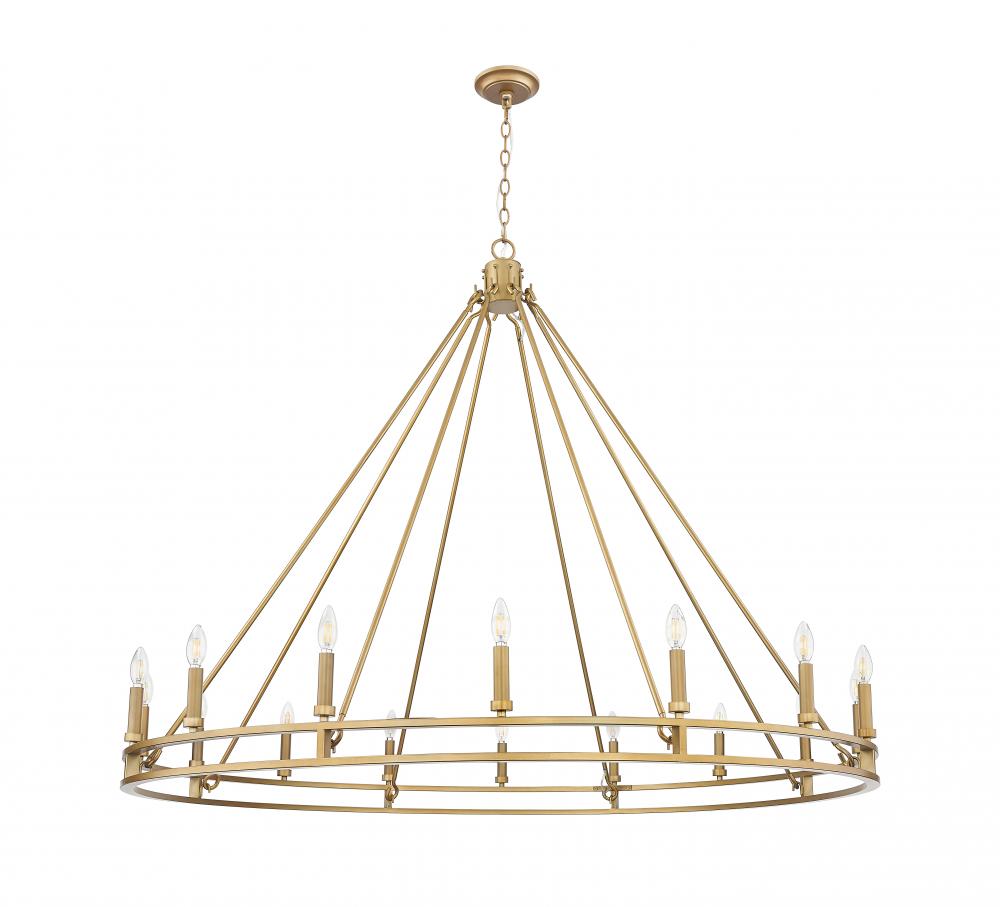 Make an impression with light that feels intentional. The Dennison sixteen-light chandelier in signature brass balances warmth and geometry in a way that instantly elevates the room. Its open design brings air and glow to modern, coastal, or urban interiors.