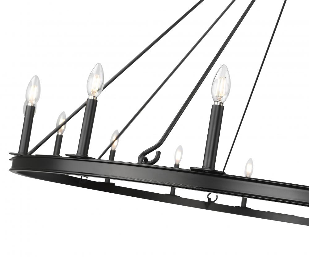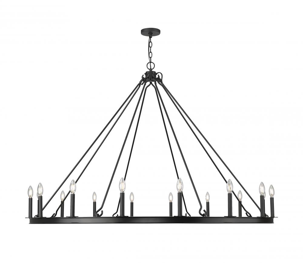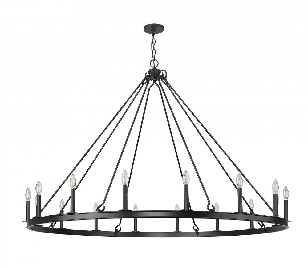 Clean and classic, this modern 16-light ring chandelier sets the tone over a grand foyer or dining room. It?s a simple steel frame with candelabra lights, creating a soft, inviting glow. A matte black finish completes the look and creates striking contrast and depth.