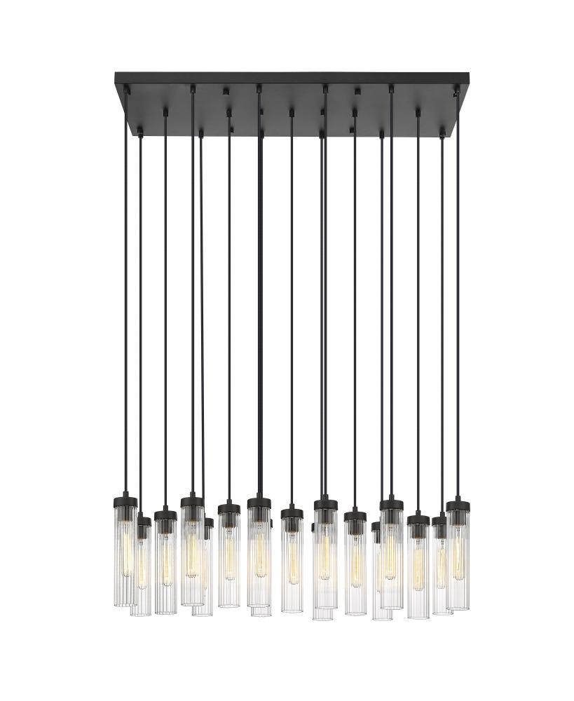 Customize a modern space through the organic artistry of lighting, choosing this 17-light chandelier to highlight an island, bar, or living area. Delicate fluted glass shades arrange in a minimalist silhouette with maximal impact, offering an organic perspective. Bold matte black finish metal comes to life in a sleek canopy when bulbs are illuminated.