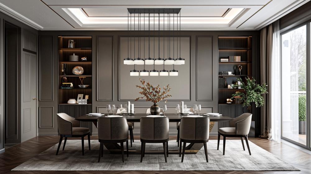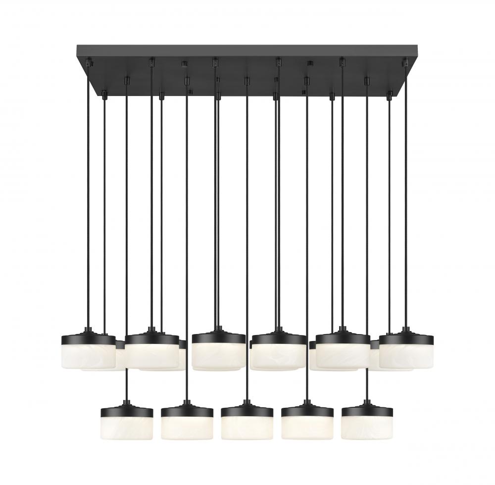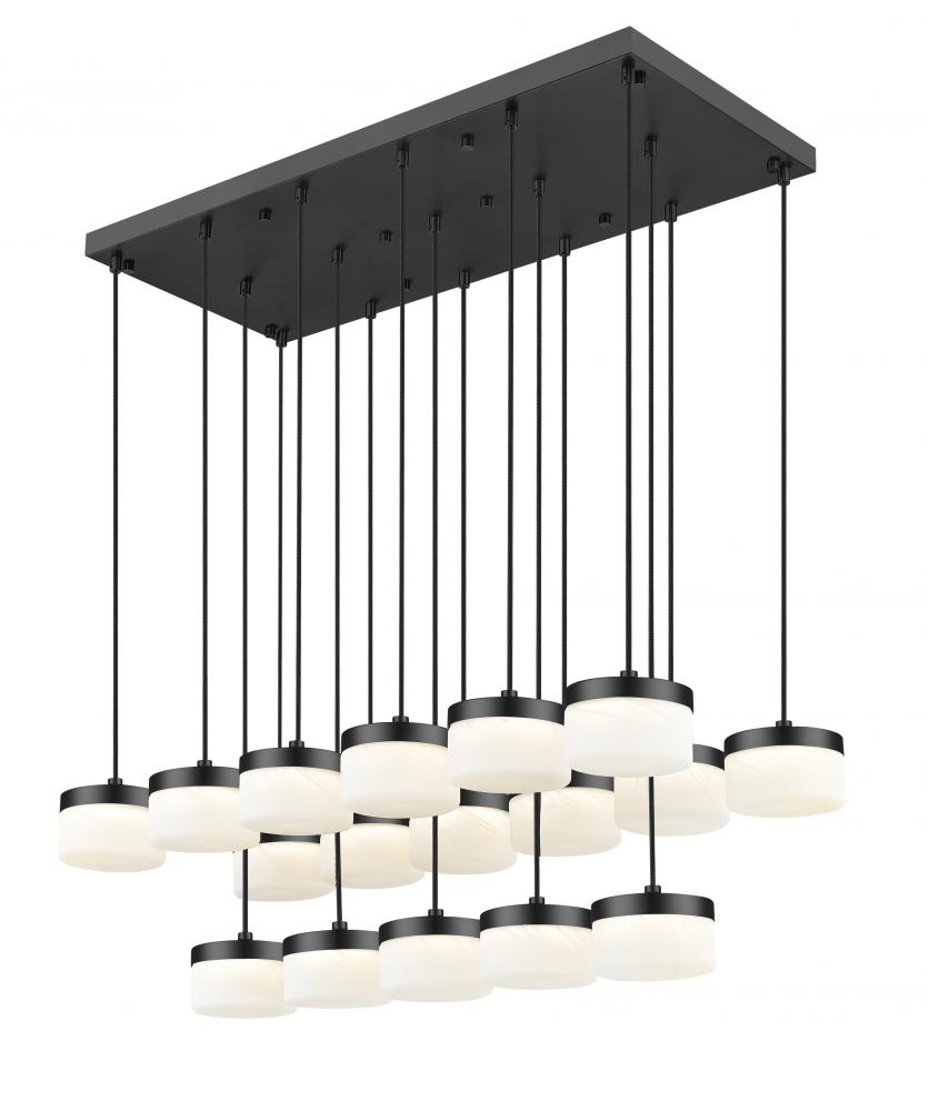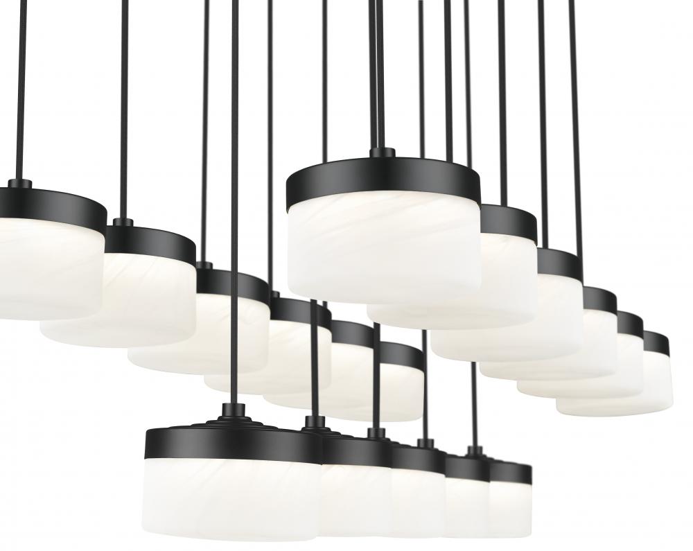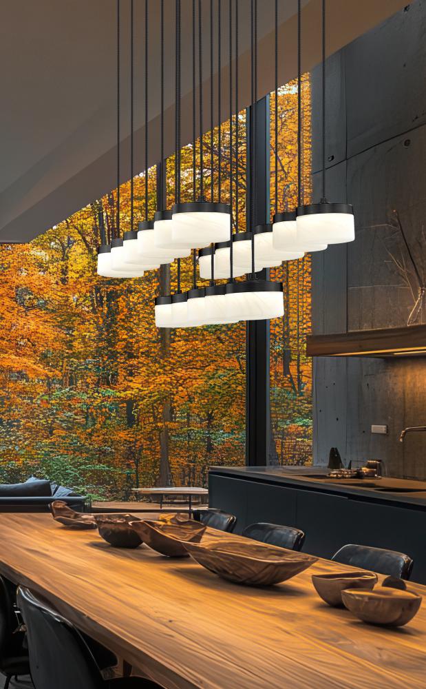 Stretching in a precise grid above the table, this matte black linear multi-light LED chandelier arranges frosted glass shades in two rows beneath a slim rectangular canopy for a striking architectural gesture. Running on integrated LEDs, the fixture throws confident, even illumination across long surfaces so family dinners, homework sessions, and weekend projects all feel well illuminated.