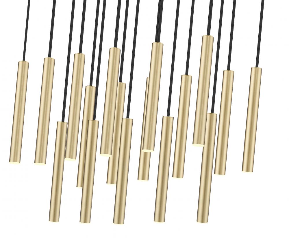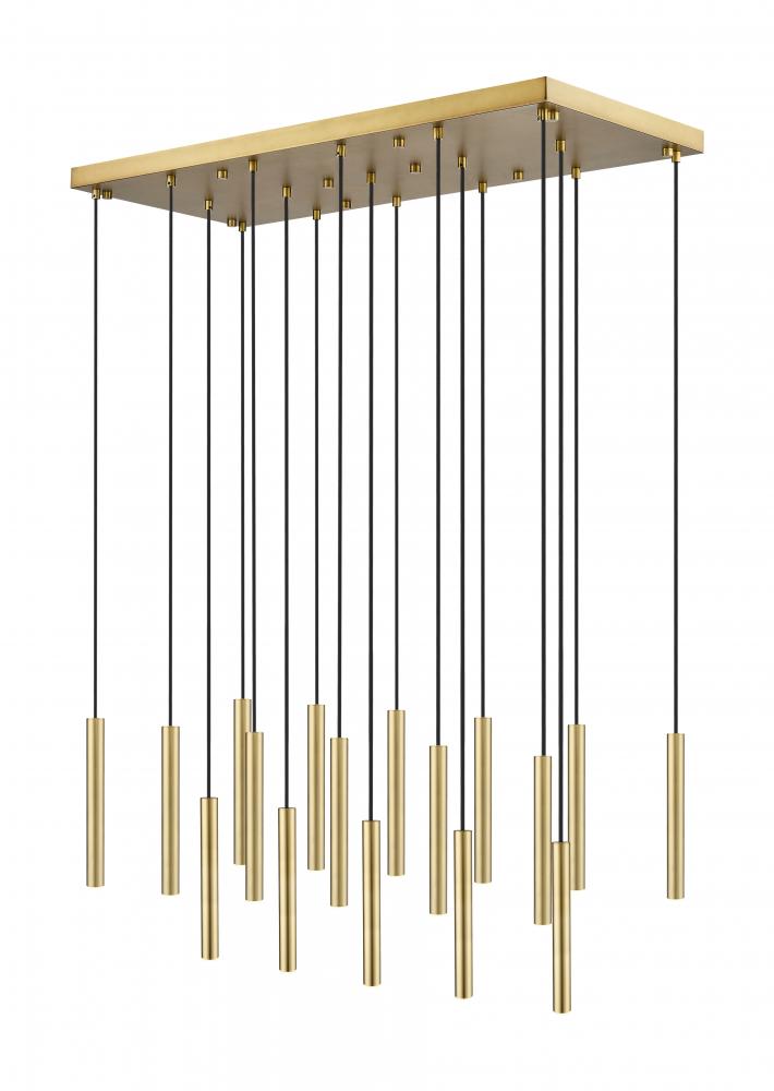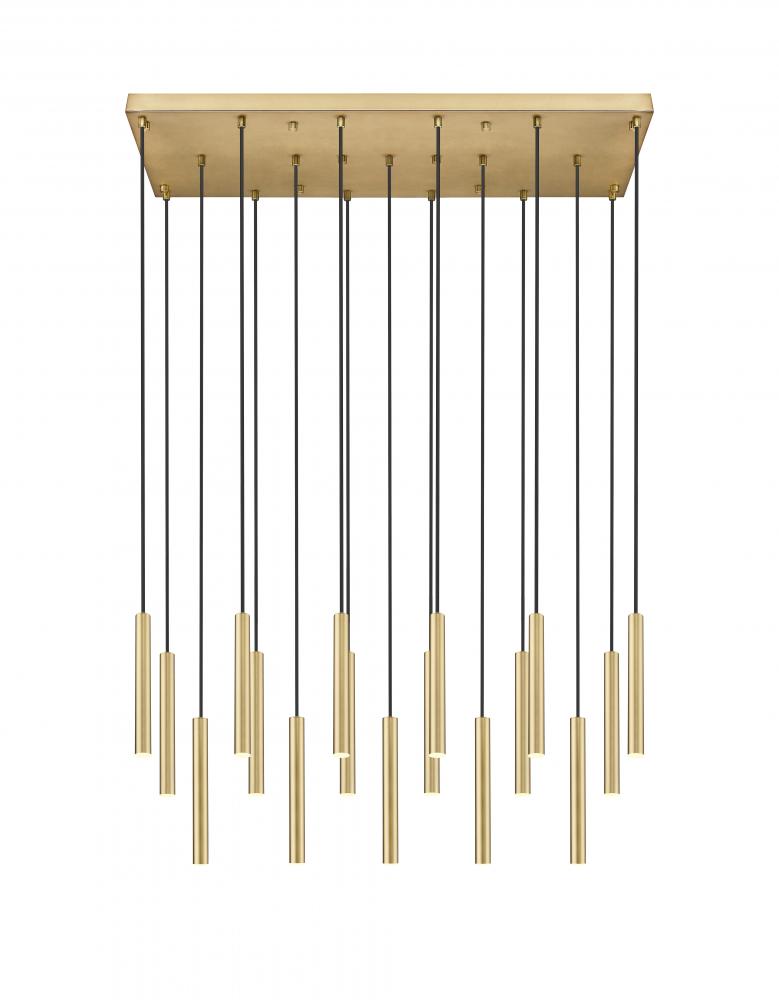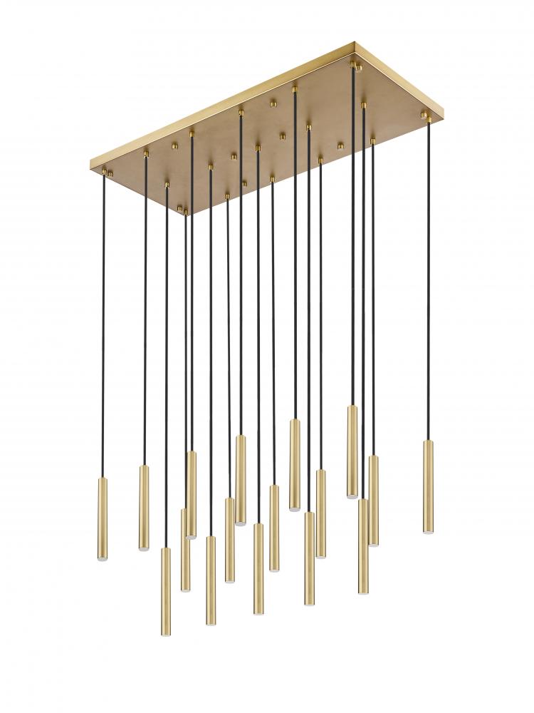Set a sophisticated ambiance in your foyer or dining room with this modern 17-light chandelier. Its linear structure is anchored with a rectangular canopy, hosting staggered lights with slim housings, all in a rich modern gold finish that casts a warm glow when the fixture is lit. Its both energy efficient and dimmable, perfect for creating ambiance.