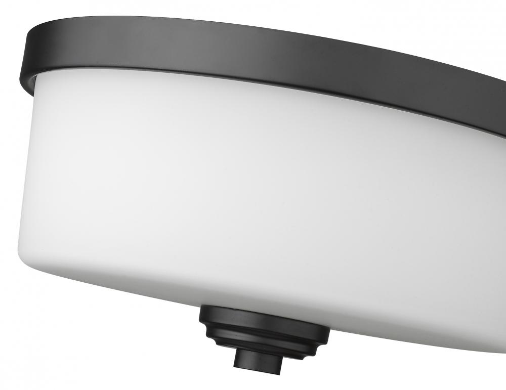 Bathe your surroundings in the graceful illumination that radiates from this two-light flush mount ceiling fixture. Stylishly simple, it boasts a round, matte black frame that creates a striking contrast with its delicate, matte opal shade. This transitional ceiling light is especially ideal for a bedroom, hallway, kitchen, or living room.