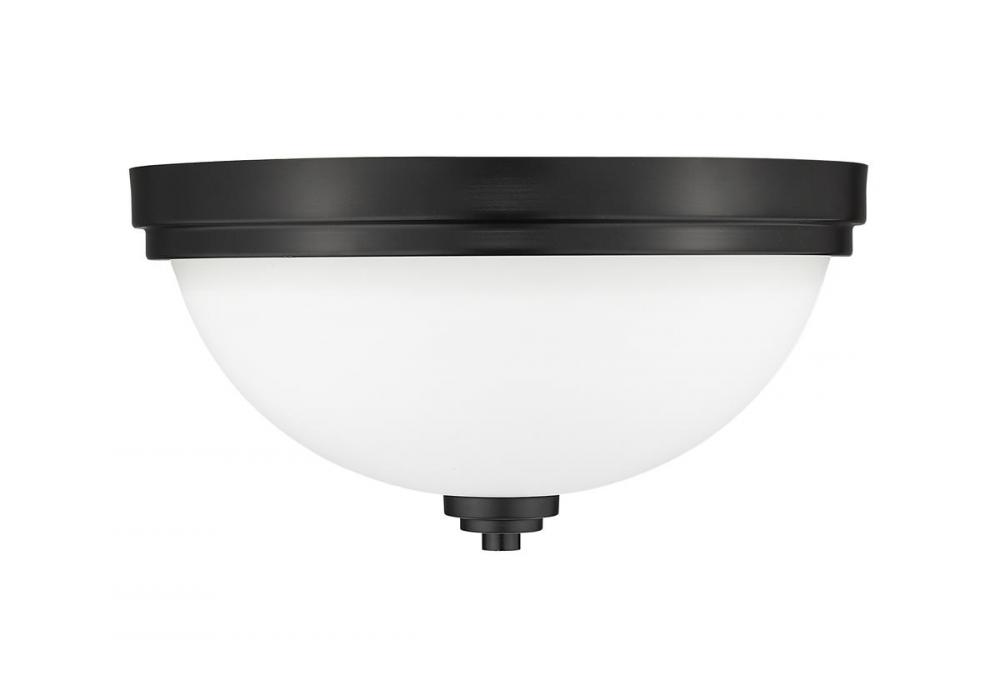 Make lighting work as a d?cor staple in a room devoted to easy living and solid taste from floor to ceiling. With a gorgeous Matte Black finish metal mount and domed Matte Opal glass shade, this two-light flush mount ceiling light lends a transitional flavor with contemporary verve.