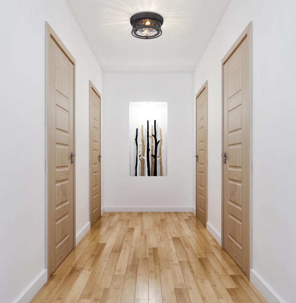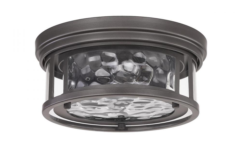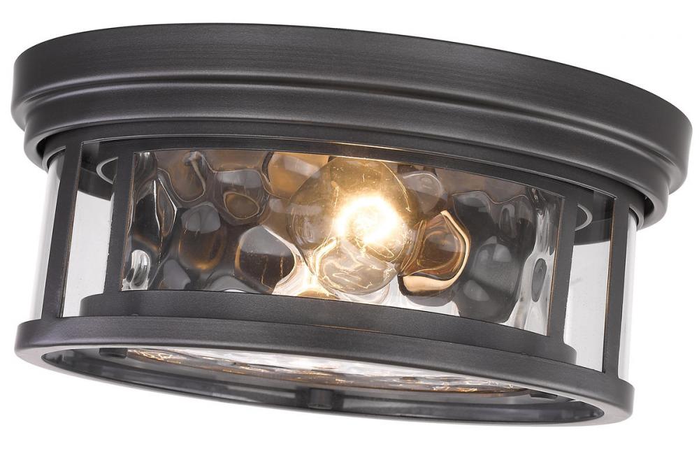 Both contemporary and classic in design, this two-light flush mount light with a clear water glass shade is a lovely lighting solution for your entryway or bedroom. A round silhouette in a brushed nickel steel frame provides a clean design that blends with your existing decor.