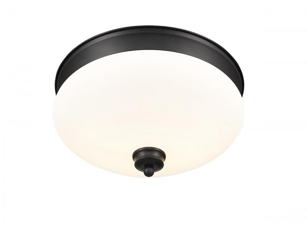 Building on an iconic schoolhouse theme, this two-light flush mount ceiling light offers a stylish source of illumination for a transitional space. Presenting a gorgeous contrast, its Matte Black finish metal accents make a Matte Opal dome shade appeal to the romantic at heart.