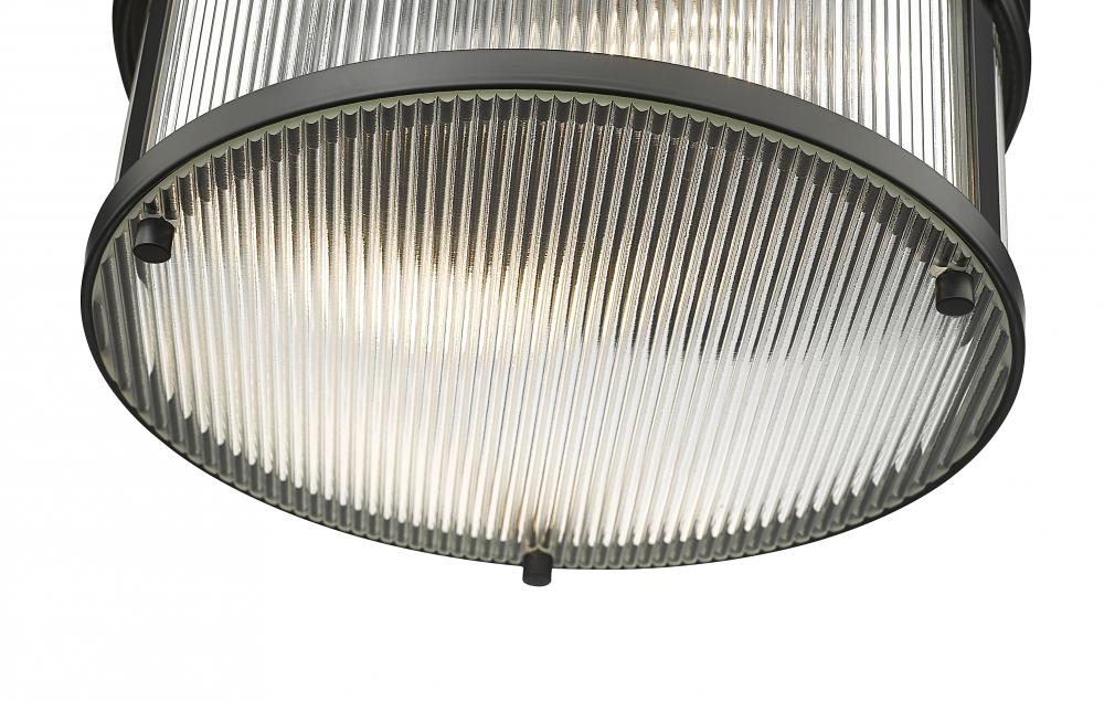 Chic ribbed glass brings an elevates sensibility to the transitional framework of a modern two-light flush mount ceiling light. Its matte black finish provides striking definition and casual elegance, perfect for an entryway, living area, or bedroom.