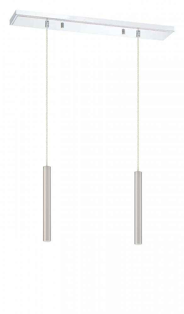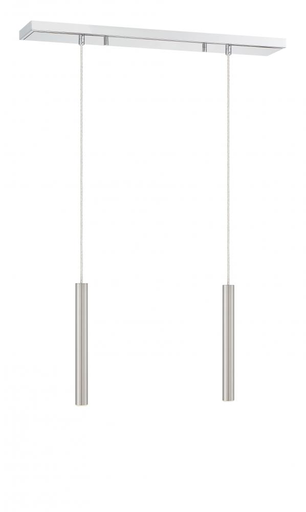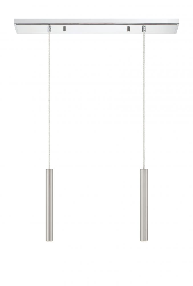 Dress up a sleek space with the clean lines from this two-light pendant light in brushed nickel. Full of elongated details, the modern silhouette adds instant refinement to any kitchen or bathroom.