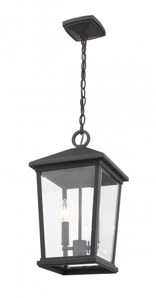 Timeless design and craftmanship emanates from the Beacon collection of outdoor fixtures. Long rectangular clear beveled panels are paired with either a Matte Black or Rubbed Bronze finish for a classic look. Available in multiple sizes and hanging styles,