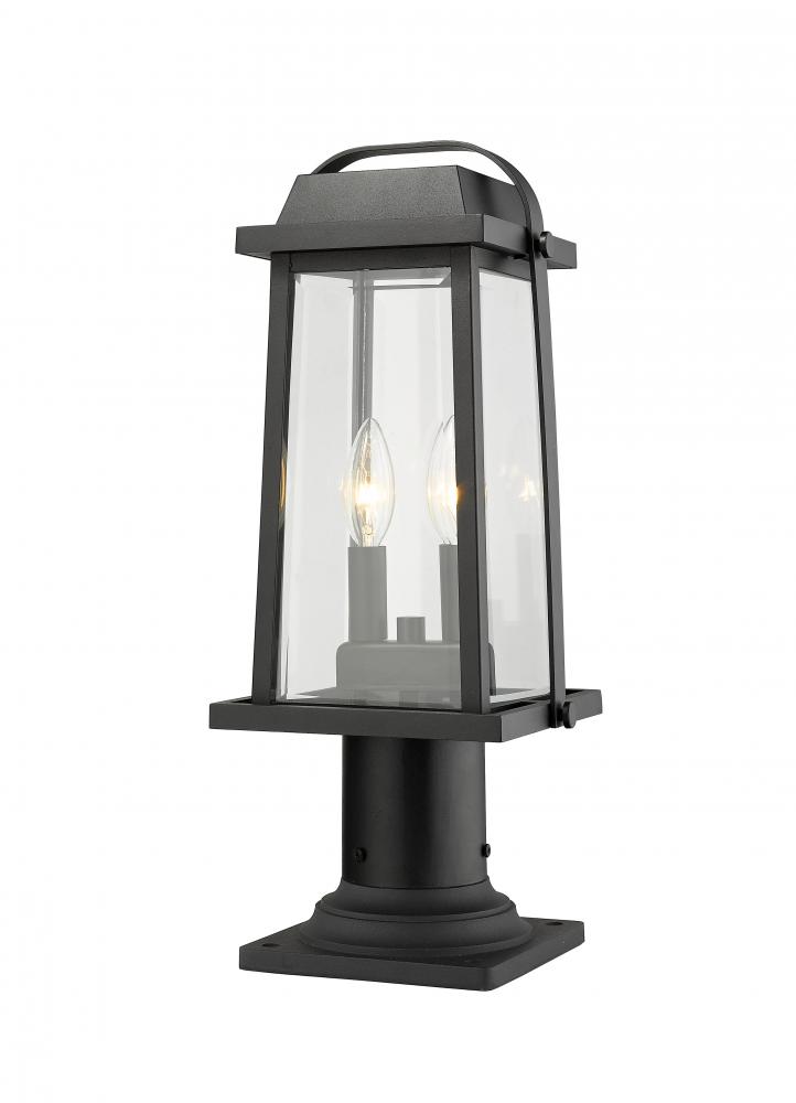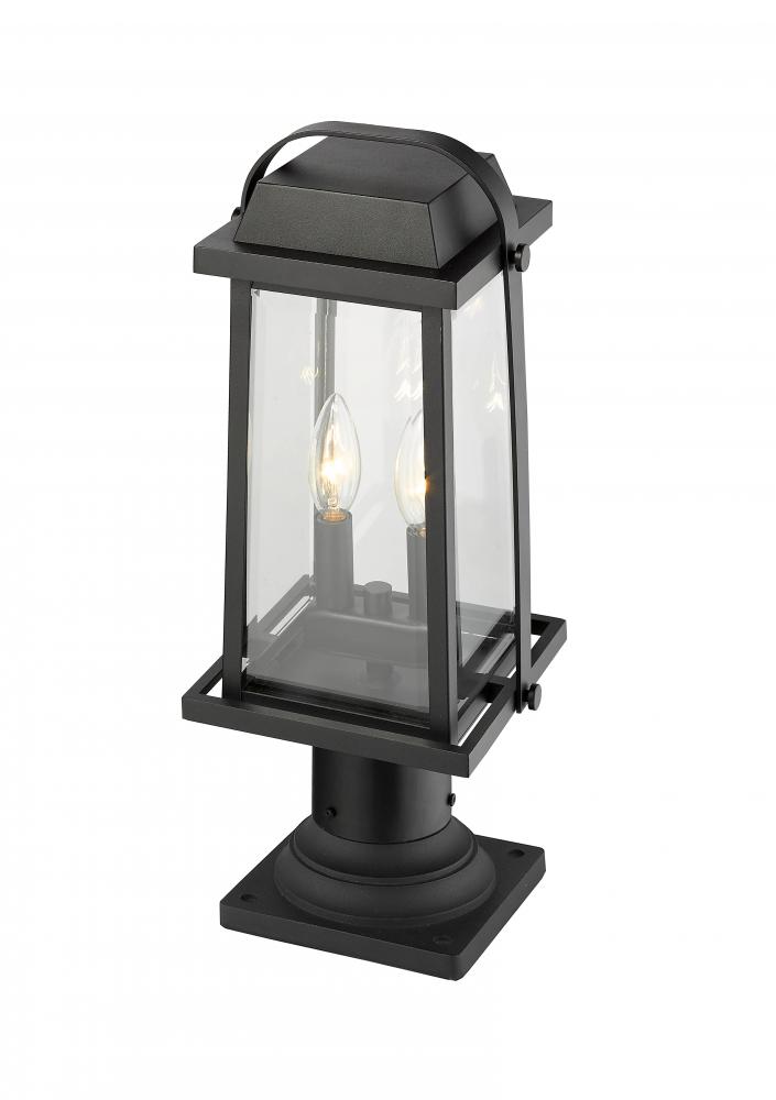 Mix up contemporary with traditional, adding this outdoor post lantern to a carefully planned garden space or walkway. A sleek black finish with a sweet lantern frame enhances the charming look of candelabra-base bulbs.