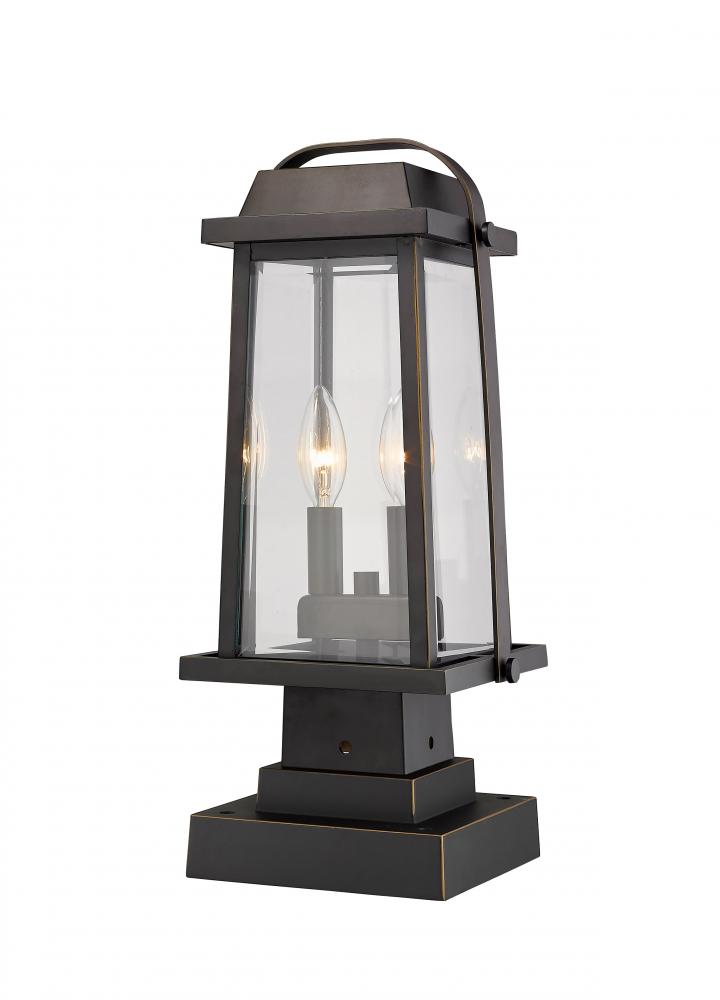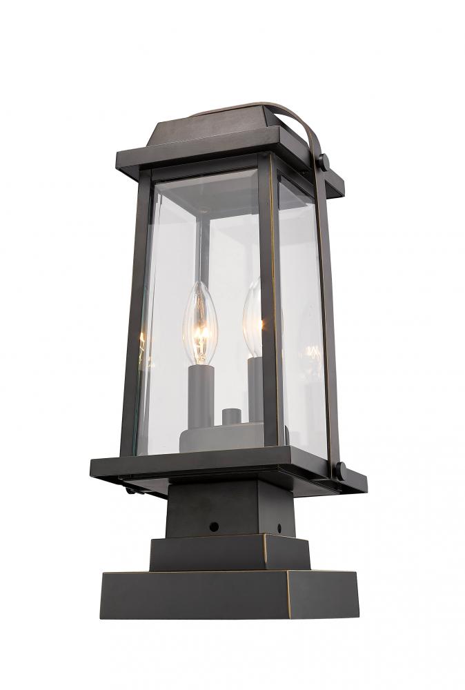 Dont settle for conventional lighting when this sleek outdoor post lantern is up for grabs. Stylize a garden or patio walkway with an artistic classic fashioned with a rich rubbed bronze finish and lighting up with a pair of candelabra-style bulb mounts.