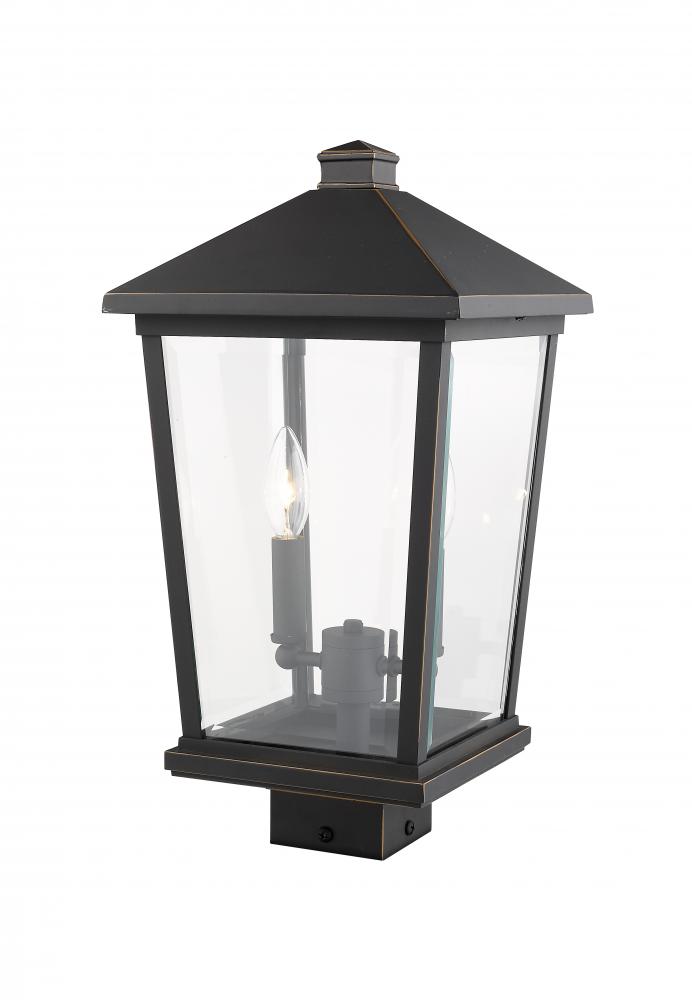 Change the personality of a front yard entryway or a back patio space with this elegant outdoor post lantern. A sleek traditional silhouette fashioned with a warm rubbed bronze finish and clear beveled glass brings an artistic, sophisticated look to gardens, walkways, and patio areas.
