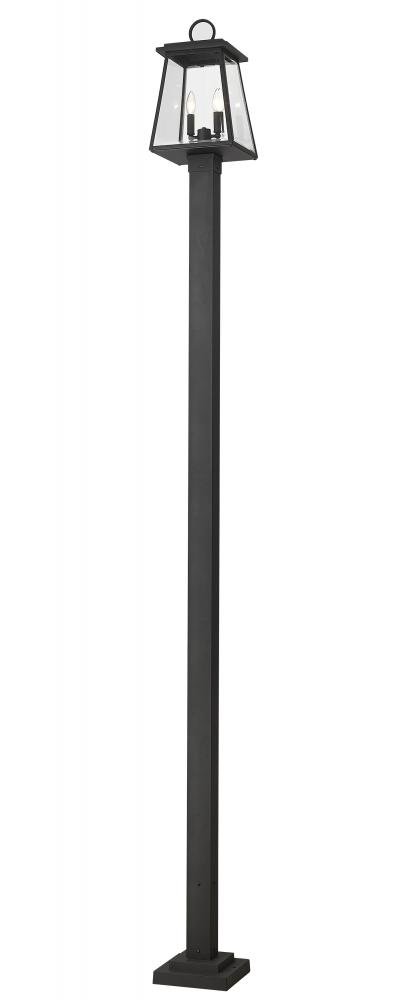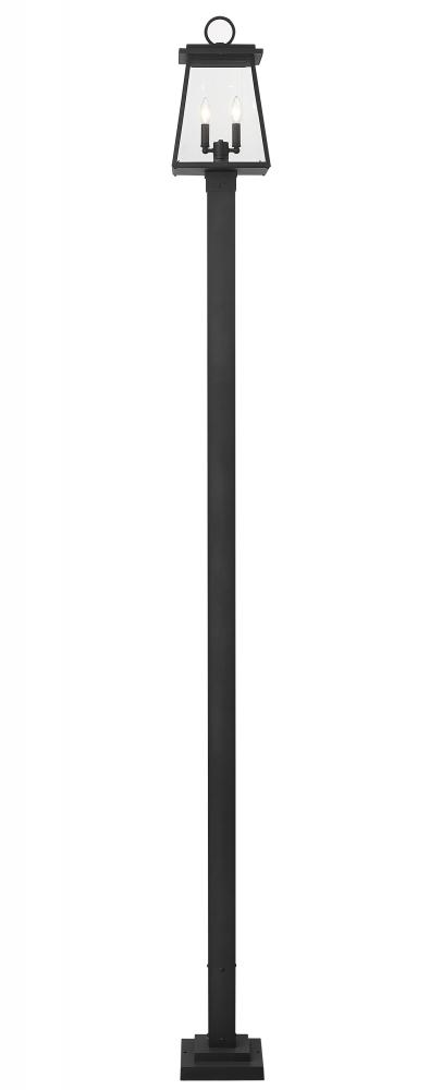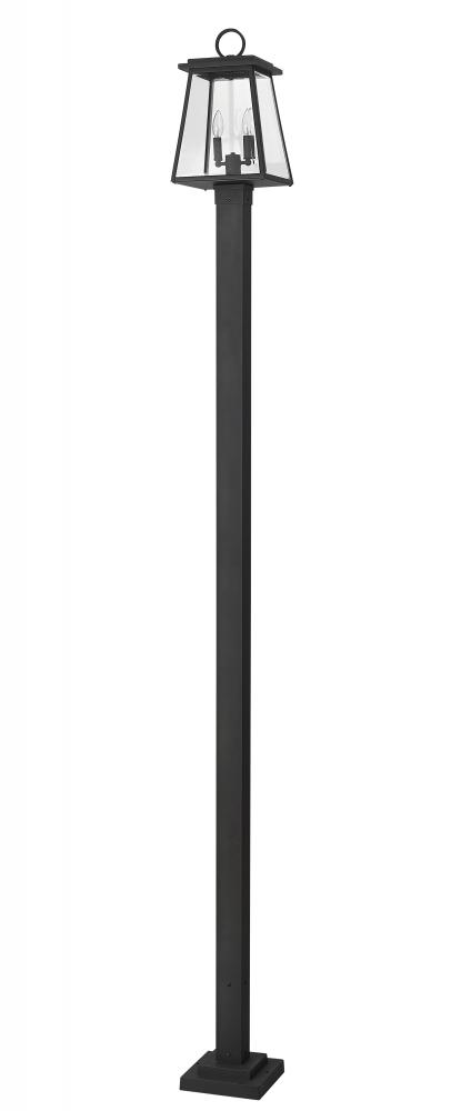 Classic retro style blends village fare with maritime character, adding a sophisticated aesthetic to exterior spaces. From the Broughton collection, this two-light outdoor post-mounted fixture offers construction of sleek black aluminum and clear beveled glass panels on its lantern-style shade. Charming candelabra bulb mounts and a straight framing design seal the deal on a tasteful look.