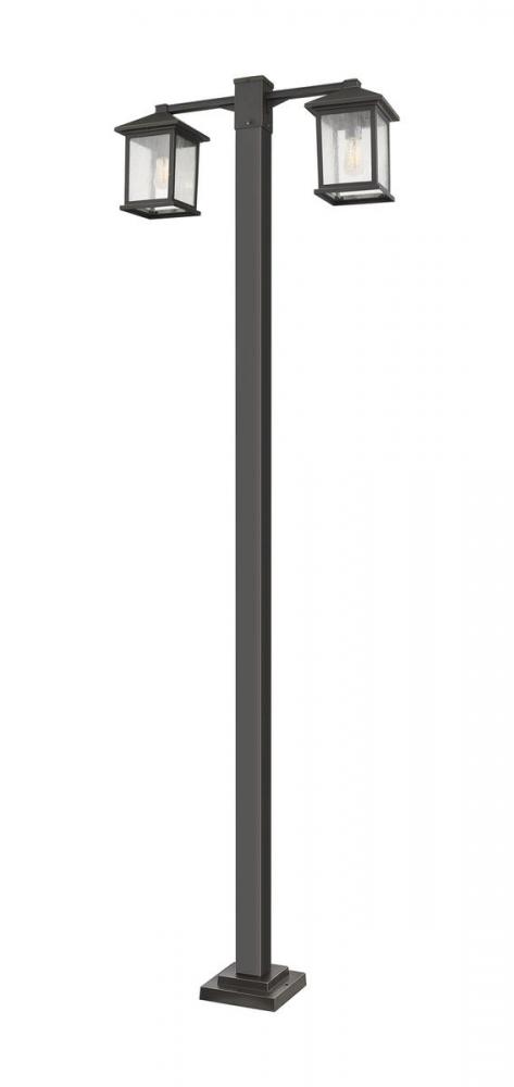 In rubbed bronze this outdoor overhead post light delivers a pair of lantern-inspired lights that illuminate a front or back path. Perfect for a larger area, the light features clean lines and a transitional silhouette that enhances any aesthetic.