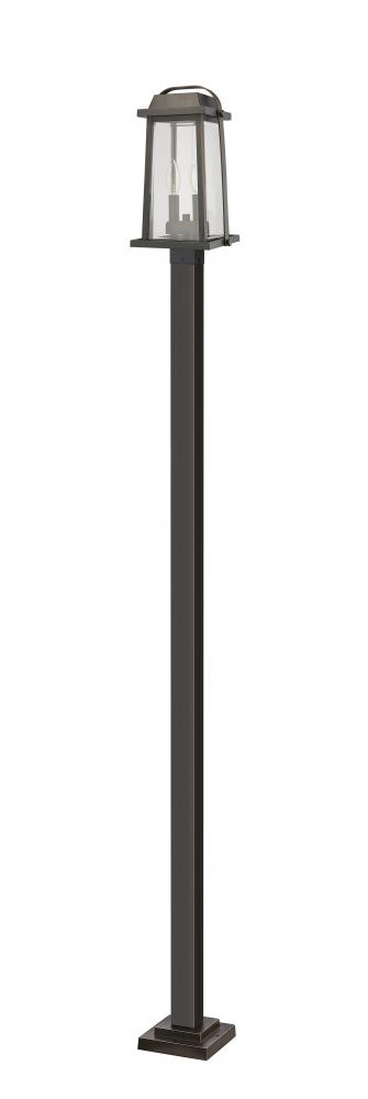 Warm rubbed bronze delivers a rich aesthetic that makes this outdoor light glow even when unlit. A sleek rubbed bronze finish adds warmth to its artfully styled pole and frame that reflects a lantern motif.