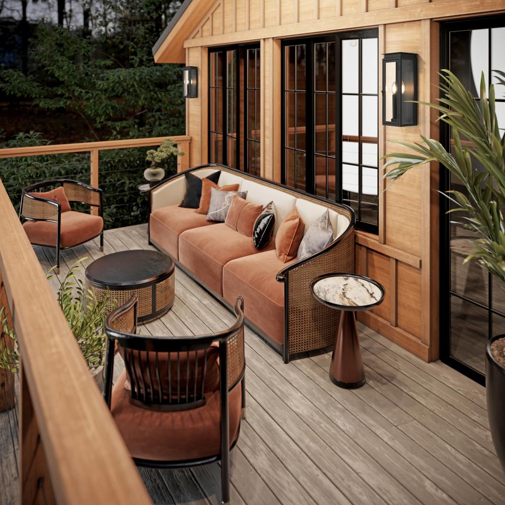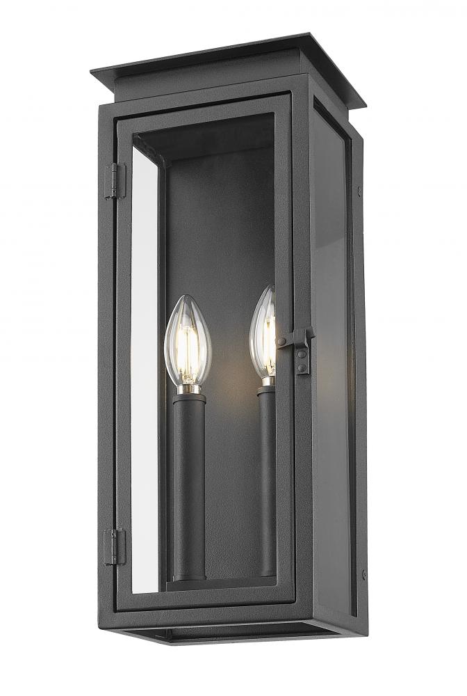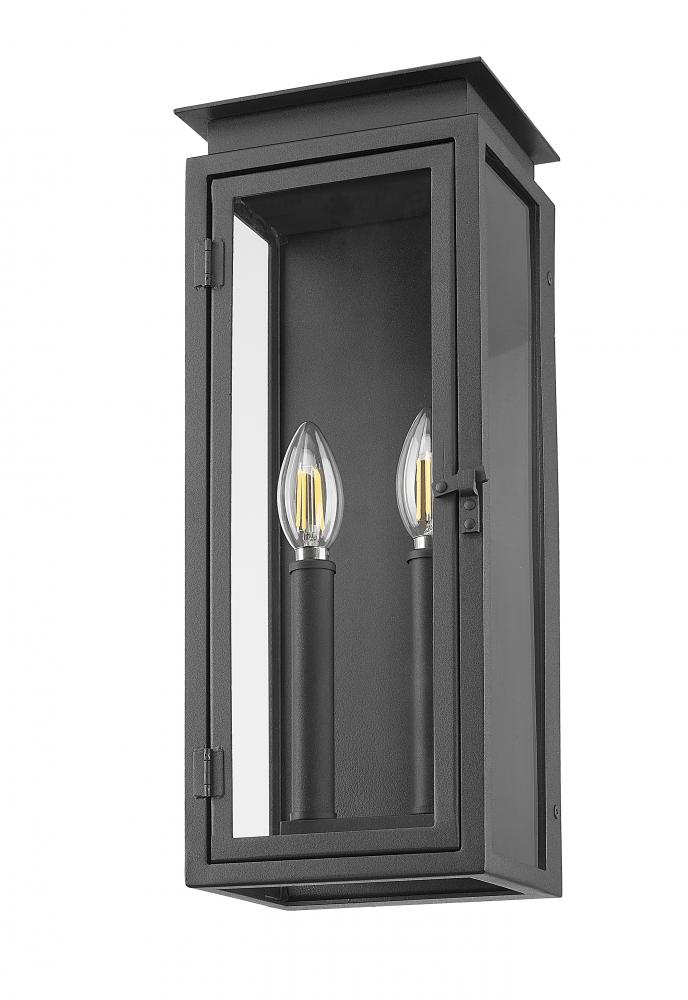Stepped trim details and a layered cap bring fresh, inviting flair to this transitional two-light outdoor wall sconce. Its a clean, classic presentation, complete with a latching glass door and glass side panels and excellent illumination on a front porch or along the side of your home. A coastal black finish is crisp and defined, offering excellent durability.