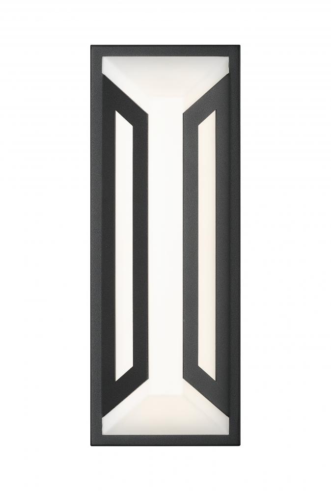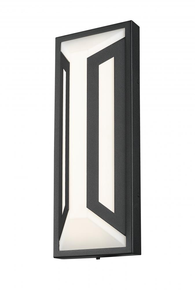A dramatic contrast and matching design motif create a statement-making impact in exterior spaces with a two-light outdoor wall light youll admire. Clean lines and angles embellish framing of matte black finish aluminum, with a soft white glass shade glowing with dimmable LED lighting, perfect for daytime and nighttime entertaining in back patio settings and pool houses.