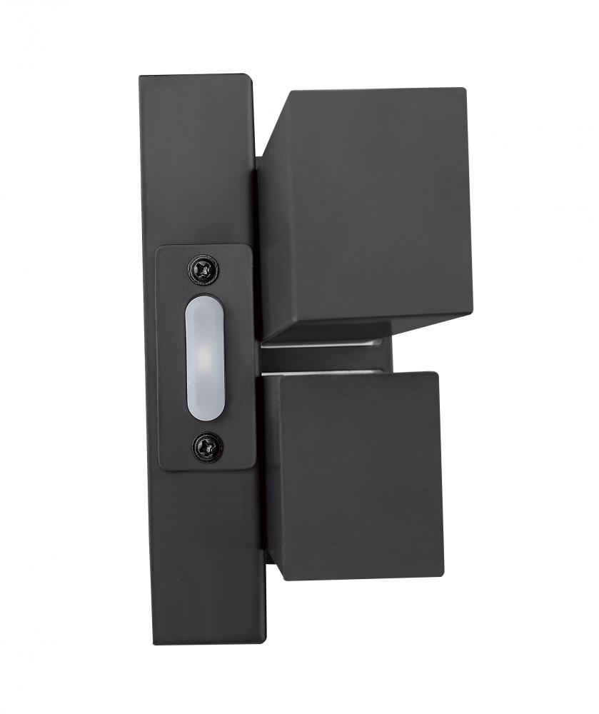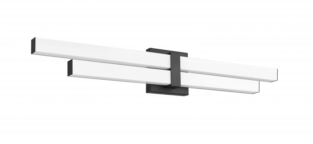 Deliver a striking color contrast and structural vibe to a modern bath space with this geometric-inspired two-light vanity light. Aluminum framing and accents offer a dramatic matte black finish, as graduated frosted bar diffusers align vertically to emit dimmable LED lighting with a customized option of white color values.