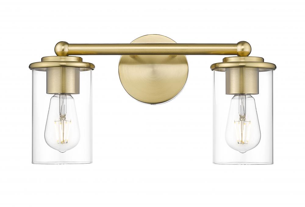 Introduce crisp, modern style and bright illumination over a vanity or in your bathroom with a contemporary two-light vanity fixture. Showcasing timeless design details, its frame receives a chic, warm luxe gold finish while clear glass allows full view of the bulb within, great for grooming and beauty rituals.