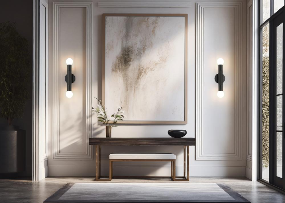 Two points of light meet a single, modern frame in this matte black sconce made for statement-making style. The perfect piece for framing mirrors or accenting long hallways, it?s a sharp and sophisticated lighting move.