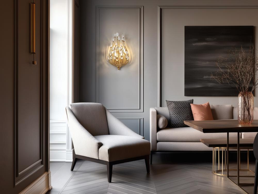 Luxe with an organic feel, this exquisite two-light wall sconce delivers a botanical theme in upscale living spaces. Open metalwork creates a freeform design with sculpted silhouetting of warm modern gold metal construction. Crystal pieces cap stems to offer bud-like light reflectors in an artisan light fixture transforming any setting.