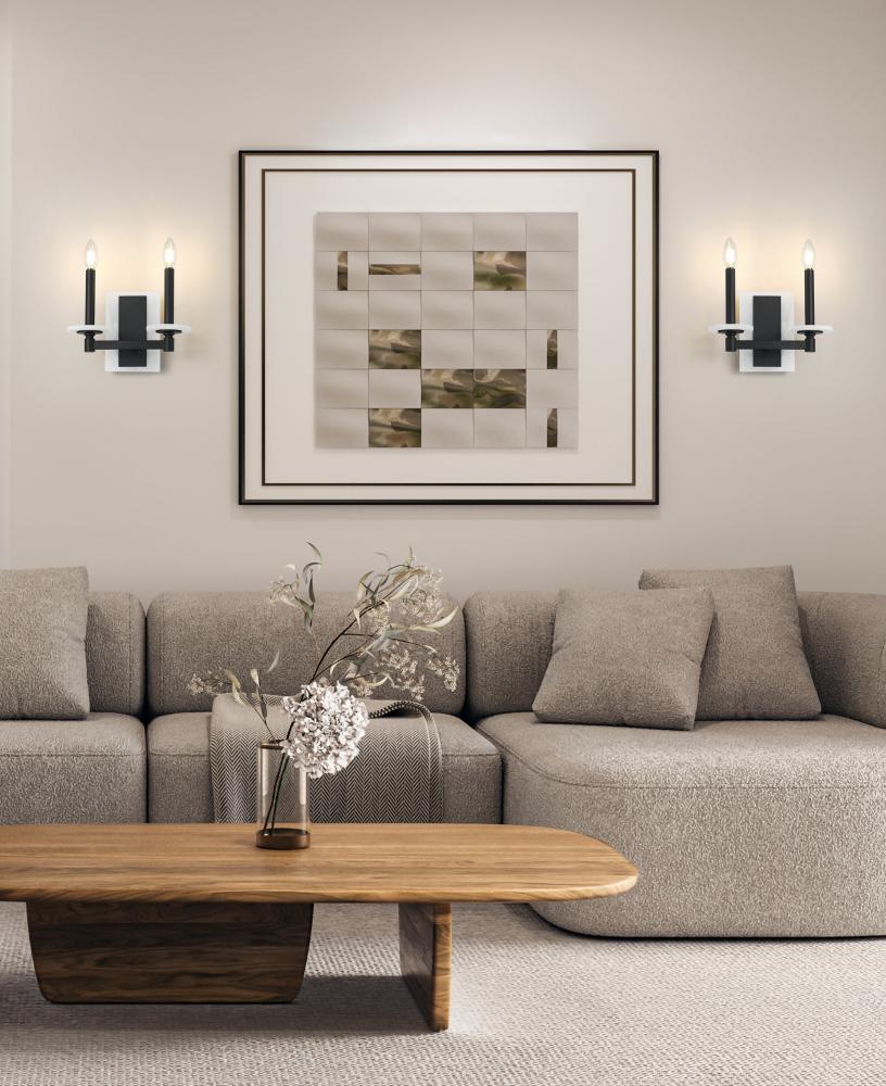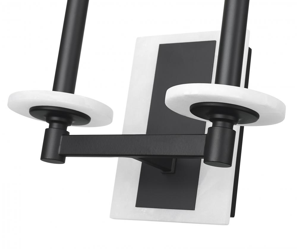 Where form meets contrast, beauty finds balance. This two-light sconce pairs the bold simplicity of matte black with the soft, organic glow of solid alabaster spheres. Its clean lines and sculptural backplate make a refined statement on any wall, offering ambient light with an edge of modern artistry.