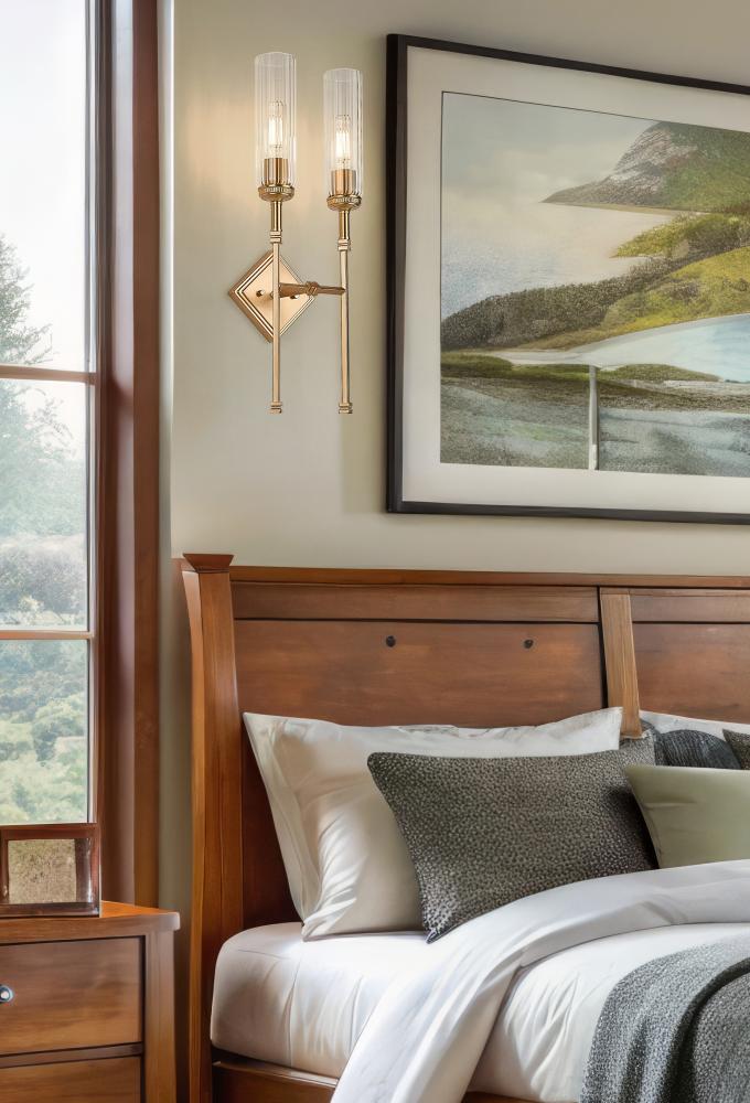 Sophistication and warmth are the hallmarks of a modern gold two-light wall sconce from the Esme collection. A compact silhouette pairs fluted glass shades that diffuse illumination and adds slender stems that lend just the right touch of urbane sophistication. The fixture is anchored with a diamond wall plate complete with stepped details that offer rich dimensionality.
