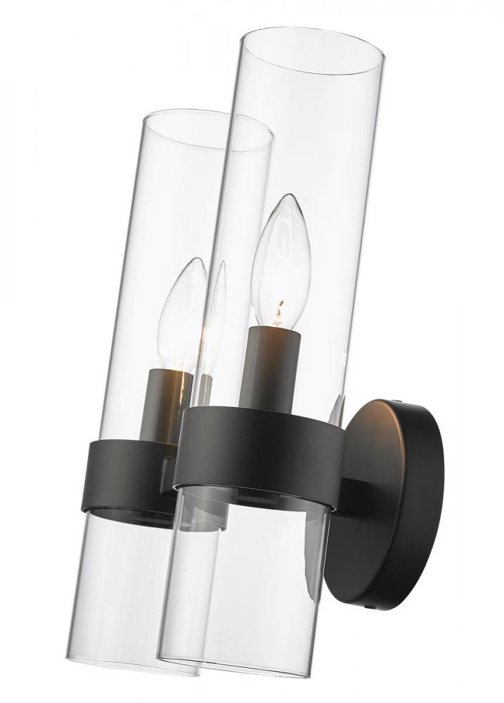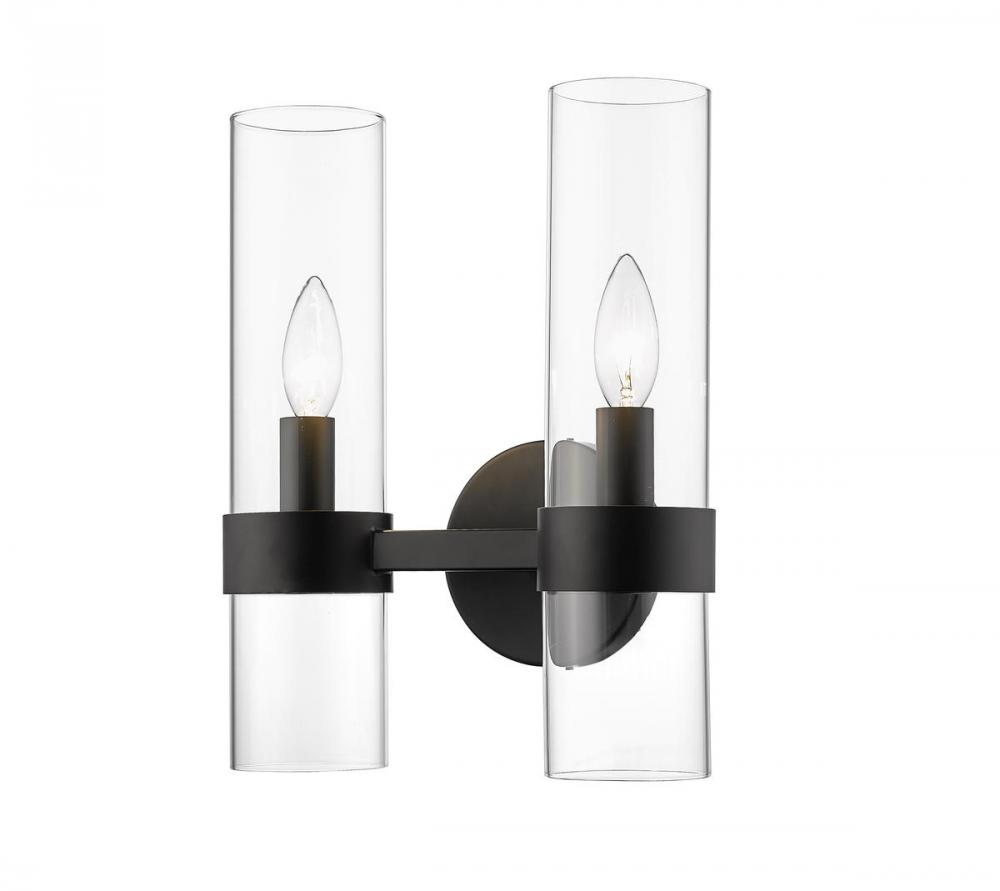 This two-light wall sconce creates a simple yet stylish look in any modern space. Contemporary vibes infuse an easy-living attitude in the Datus matte black two-light sconce, yielding a sleek design featuring slender clear glass cylinder shades mounted to a matte black finish solid steel frame. Dress up and illuminate a hallway, bath space, or main living area with this sconce with a minimalist yet impressionable flavor.