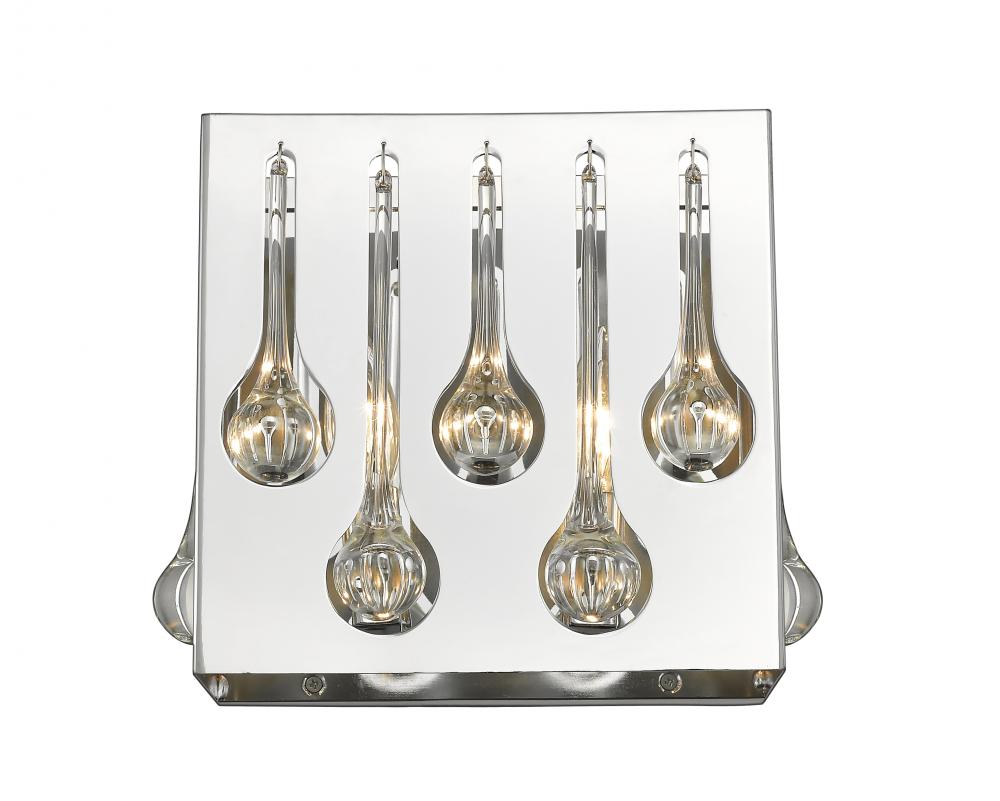 Bring spot lighting to a modern or transitional space with this elegant two-light wall sconce. A juxtaposition of fluidity and geometry pairs a boxy steel frame with romantic crystal droplets, creating an artfully inspiring fixture.