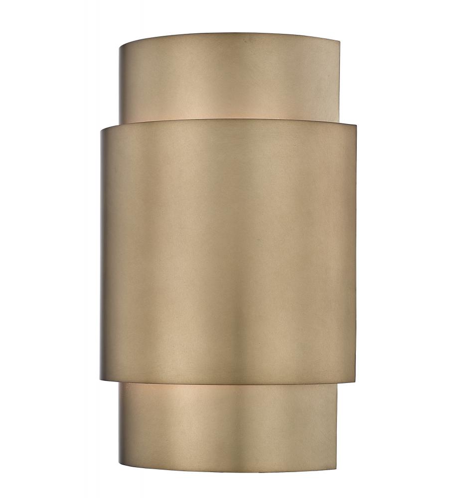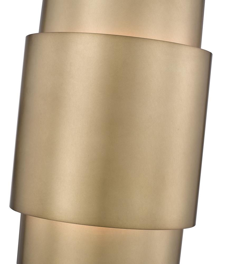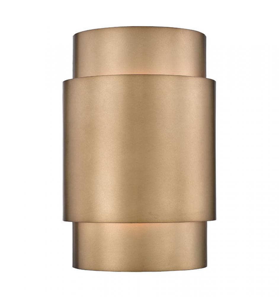 Expertly crafted in steel, this modern two-light wall sconce delivers a touch of Art Deco elegance to your living area or entryway. Its layered drum shade boasts a slender interior cylinder in a warm rubbed brass finish, complemented with a shorter and wider cylinder in a matching finish for a monochromatic look and feel. Refined without overwhelming surrounding decor, this sconce is a charming addition.