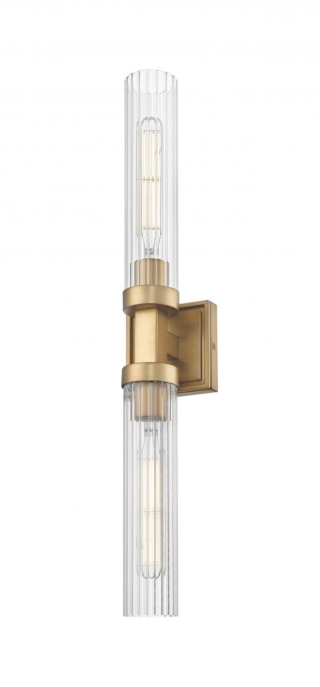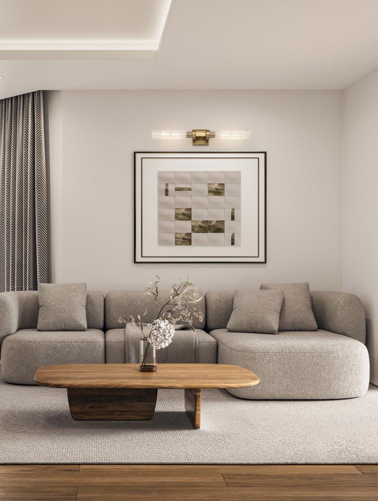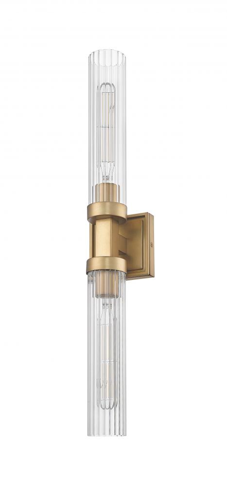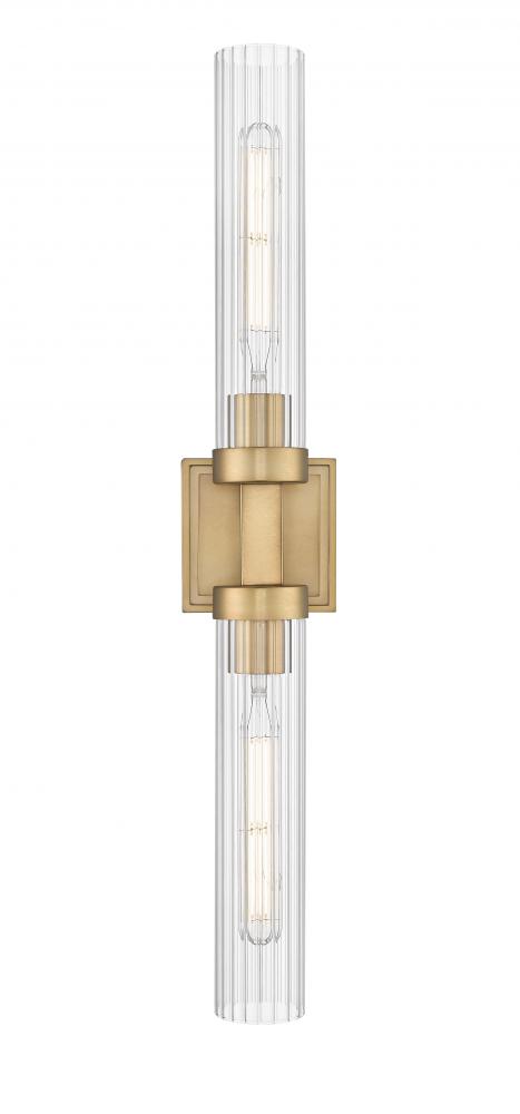 Indulge in the warm richness of a timeless rubbed brass finish on this modern two-light wall sconce. It sets the tone in a linear silhouette, joining a pair of fluted glass cylinders that diffuse illumination for a welcoming glow. Add this double-ended sconce to your entry or living room to make a sophisticated statement.